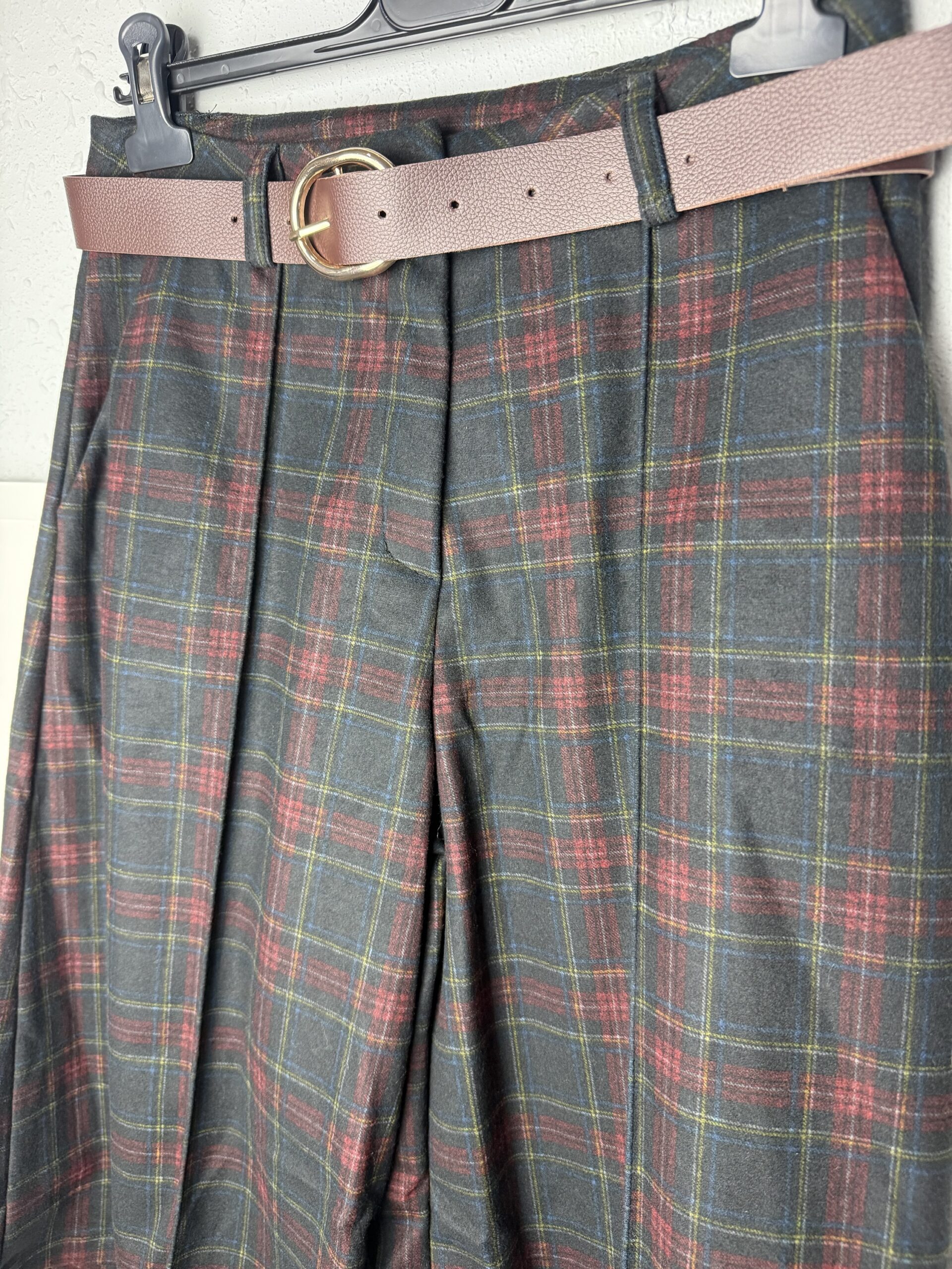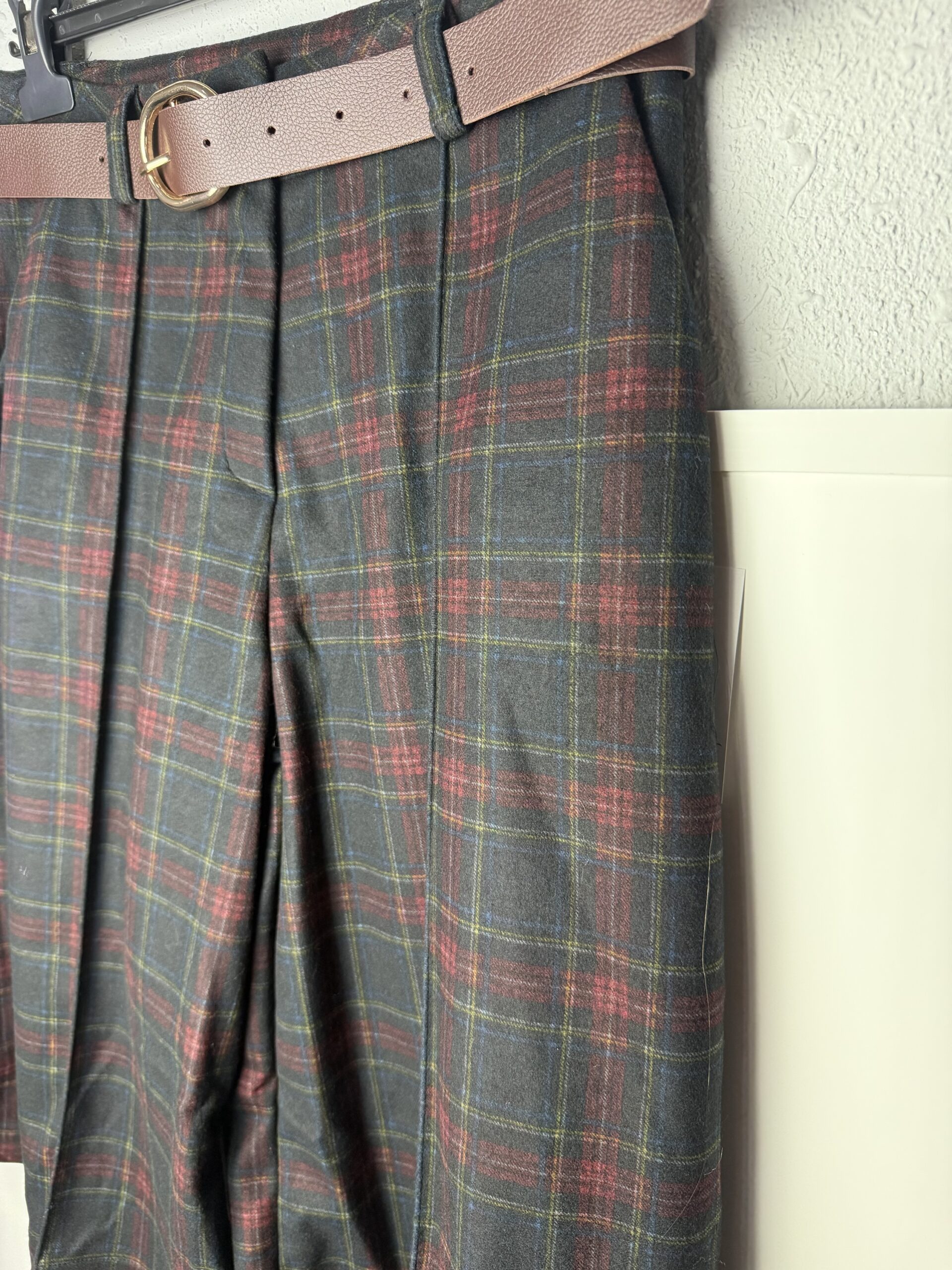 Bermuda en tela de franela gordita con estampado de cuadros y cinturón. Ideal para combinar con bota alta.