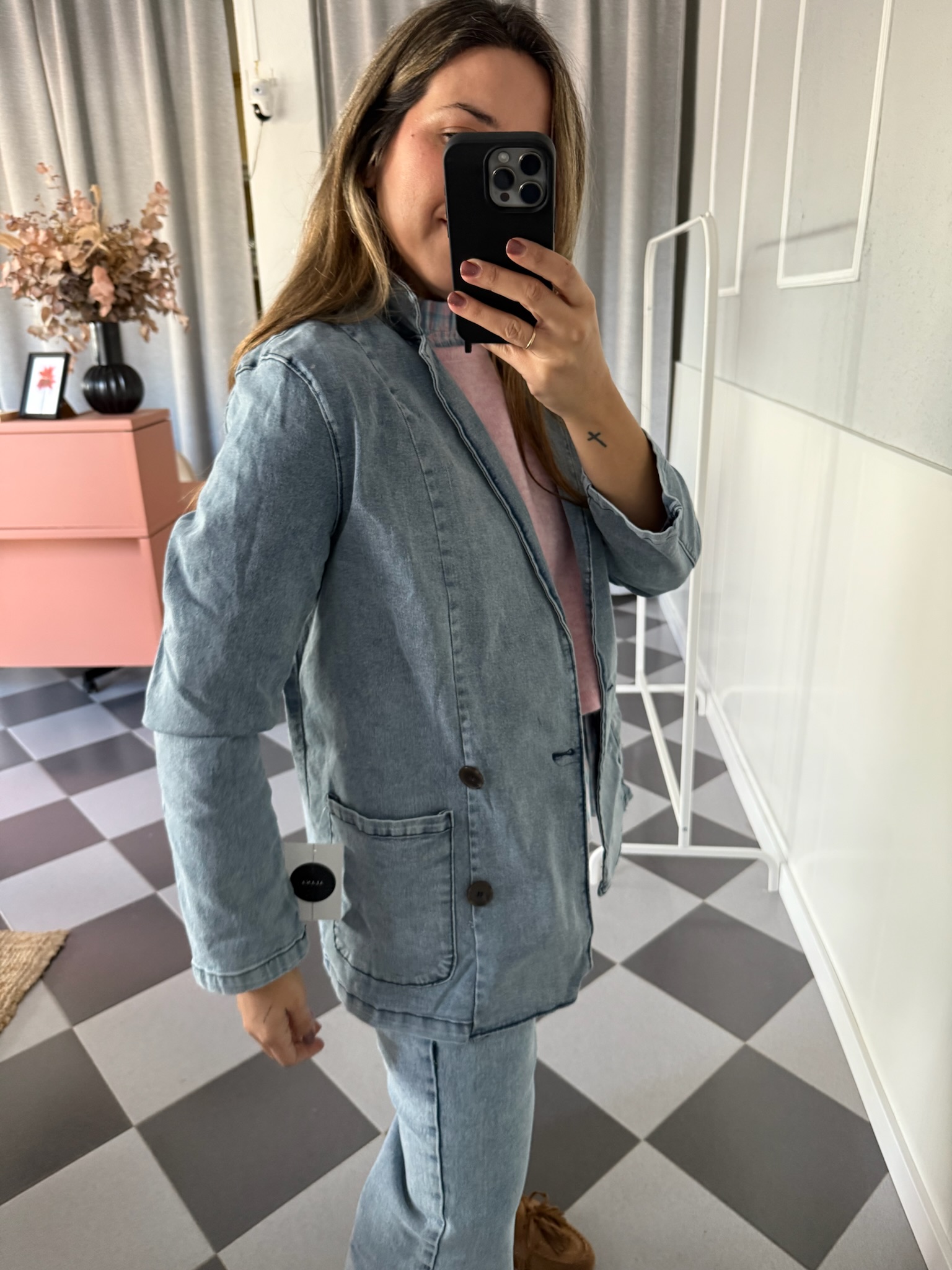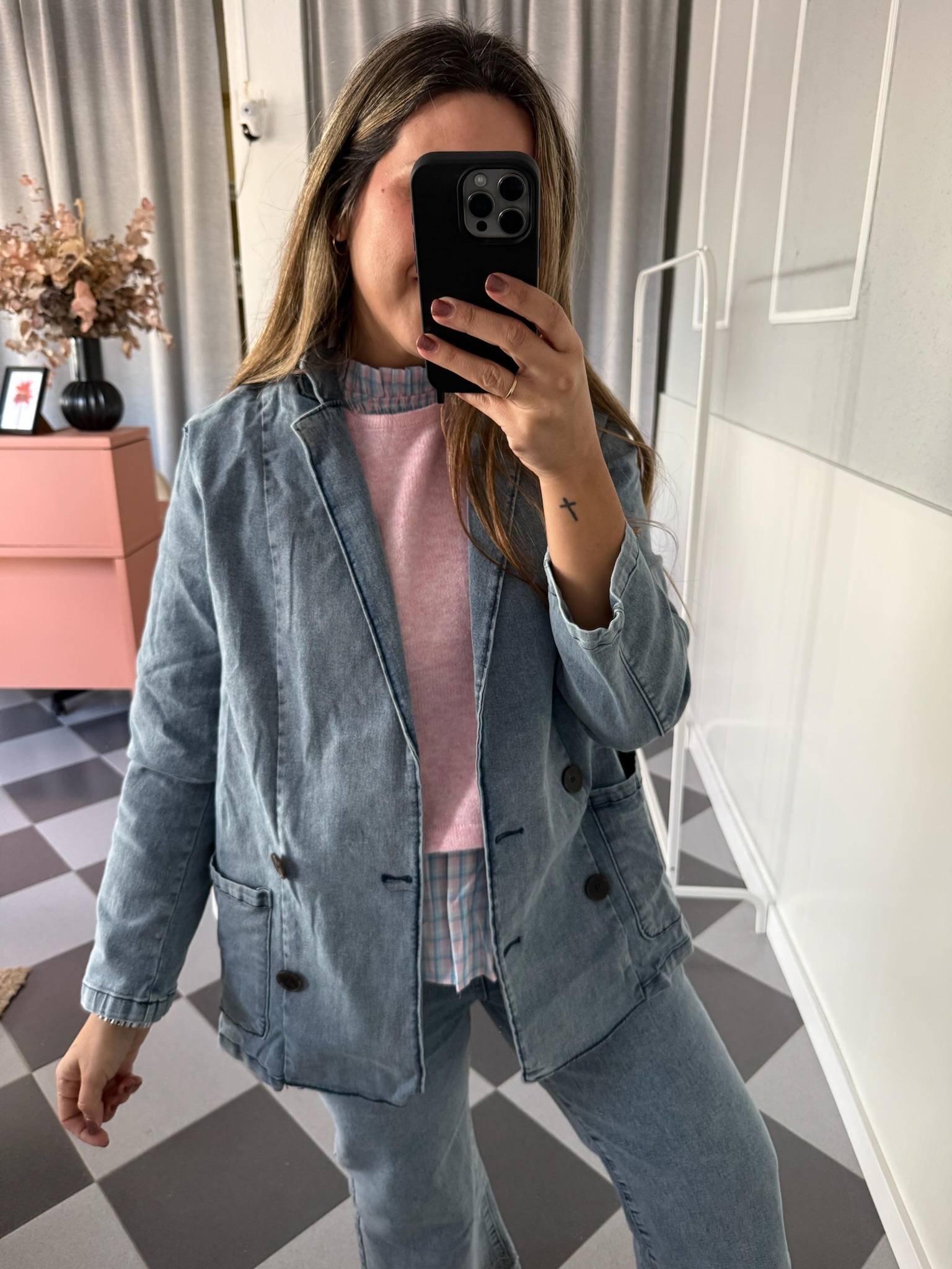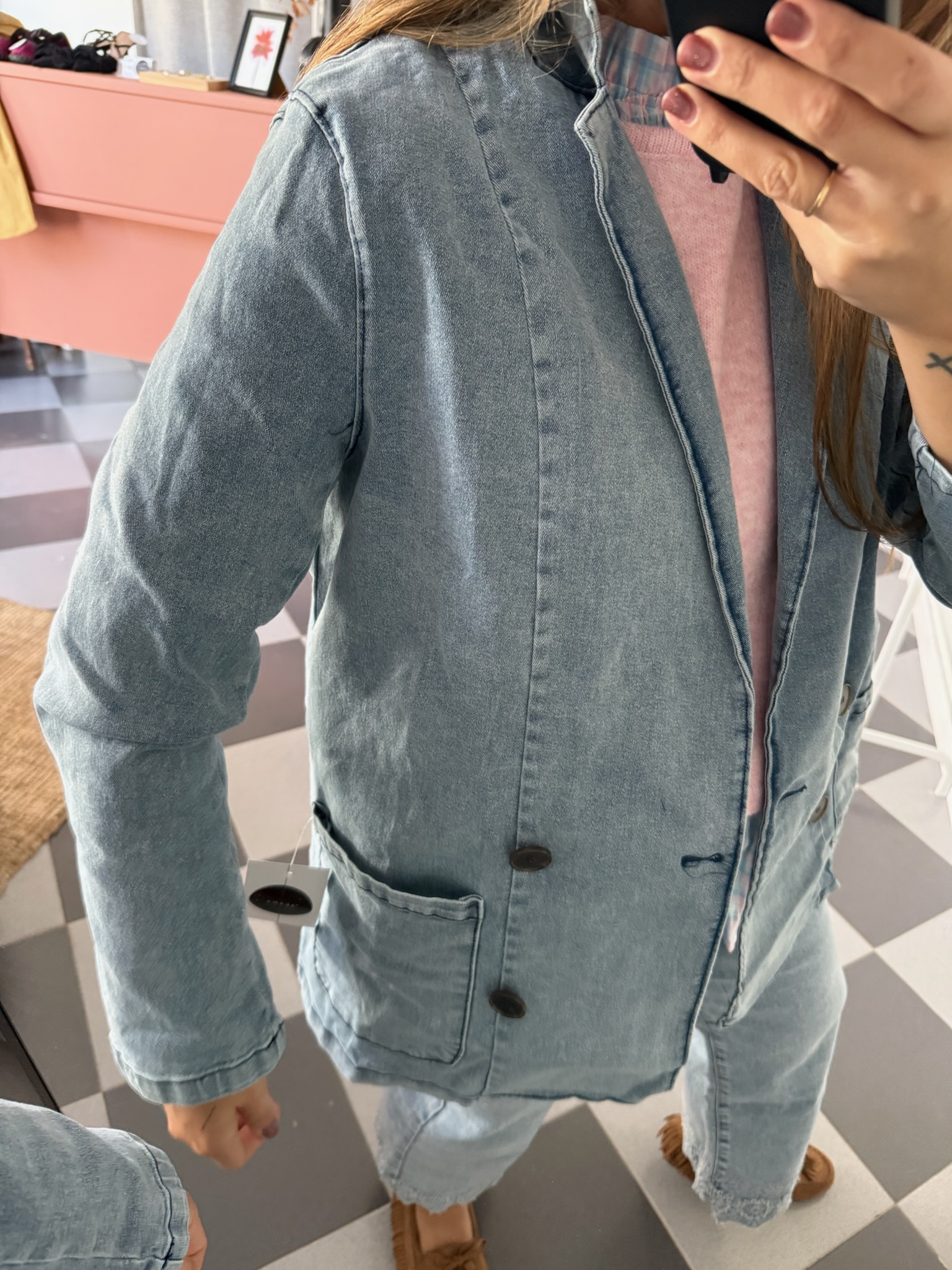 Blazer vaquera cruzada. El denim es tendencia esta temporada y esta prenda va a acompañarte en todos tus looks.