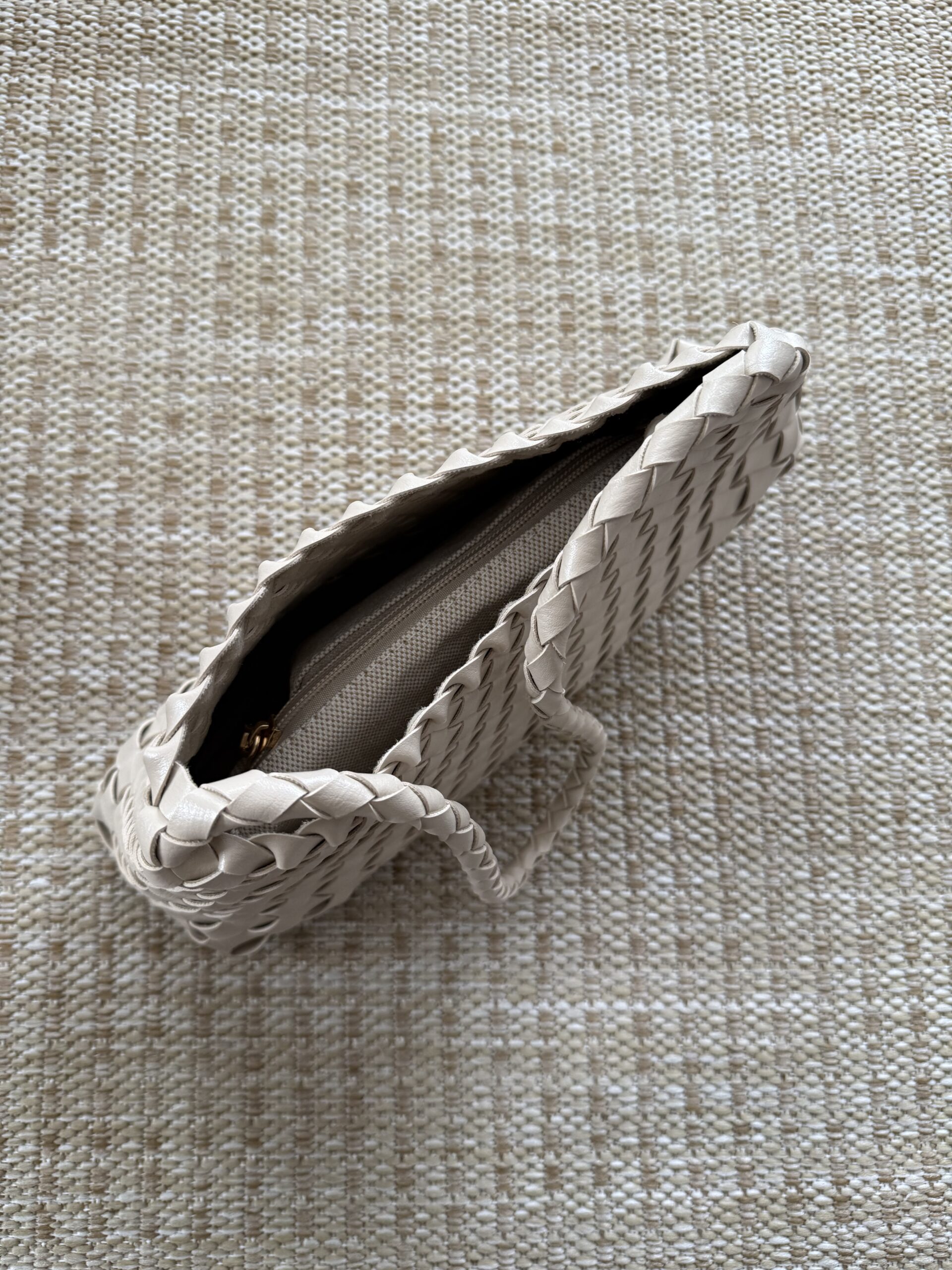 Bolso de piel trenzado beige