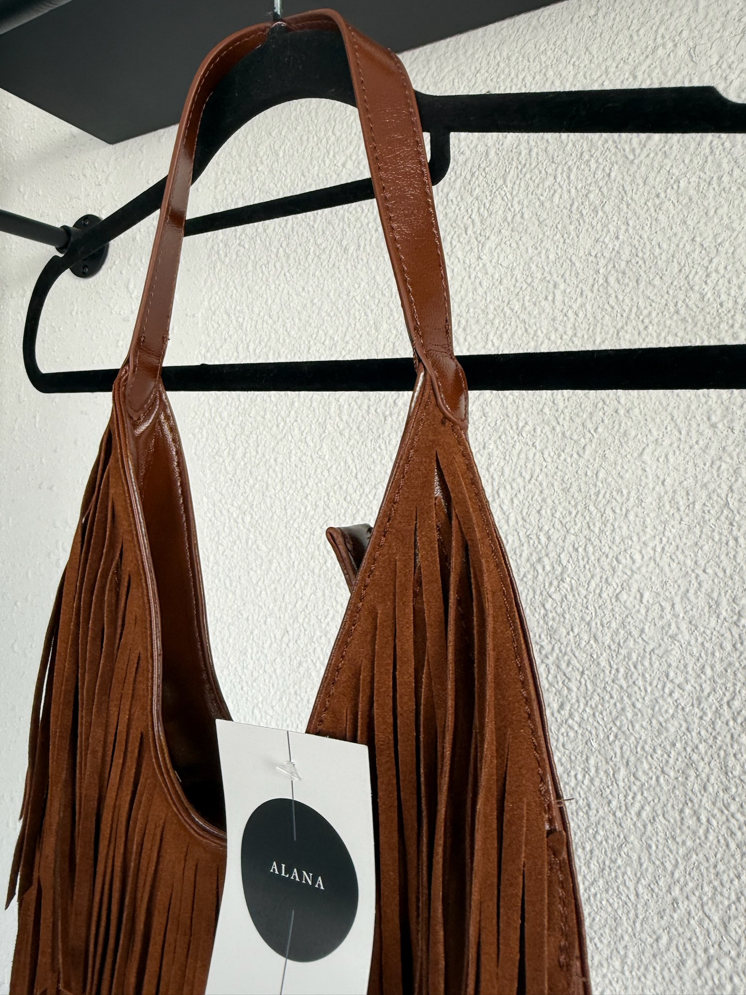 Bolso de hombro con flecos de ante y asa en polipiel.