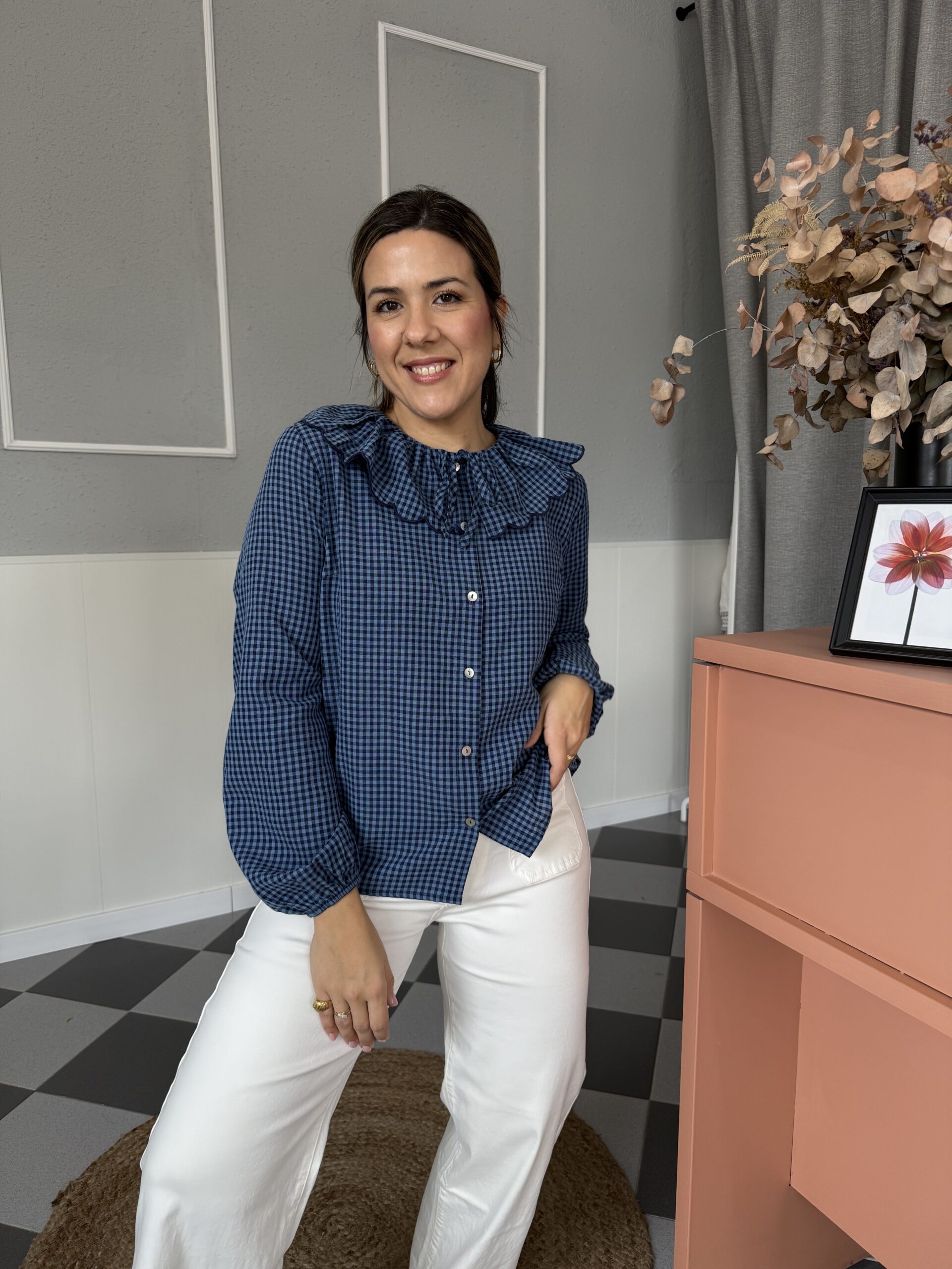 Camisa cuadros cuello rizado