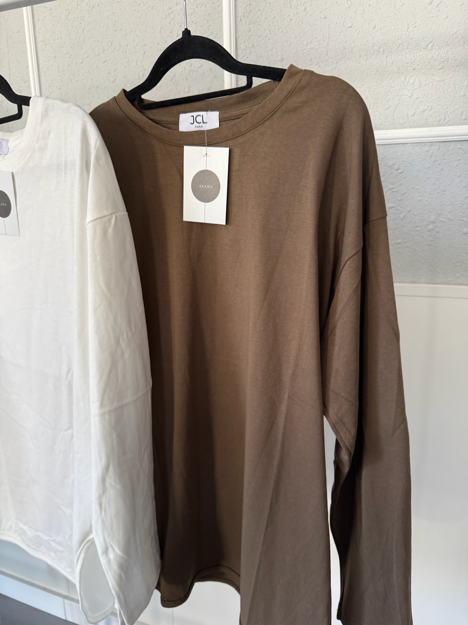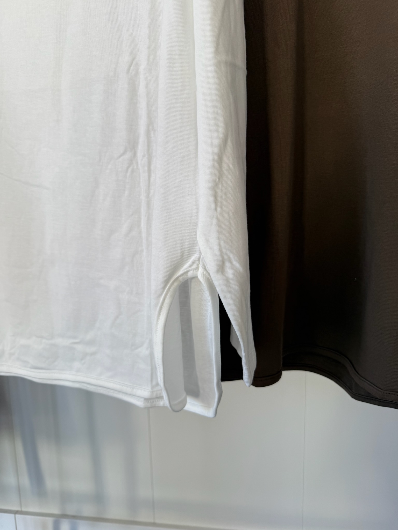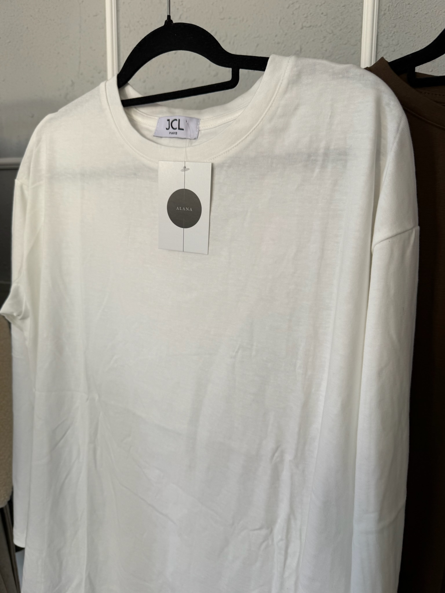 Camiseta de algodón en talla única, amplia y larga con detalle de la abertura redondeada en el lateral.