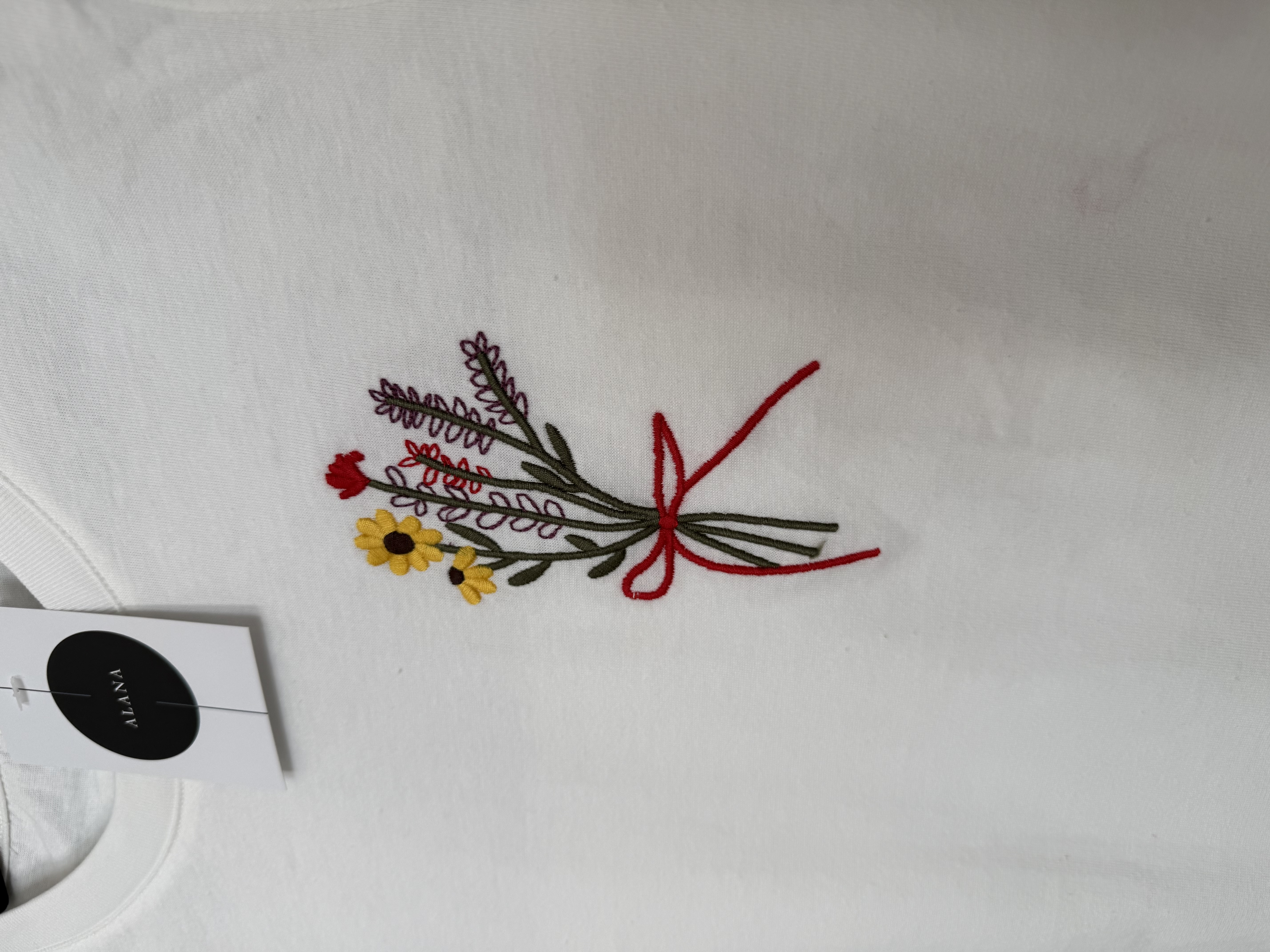Camiseta básica de manga corta con detalle de ramo de flores bordado.