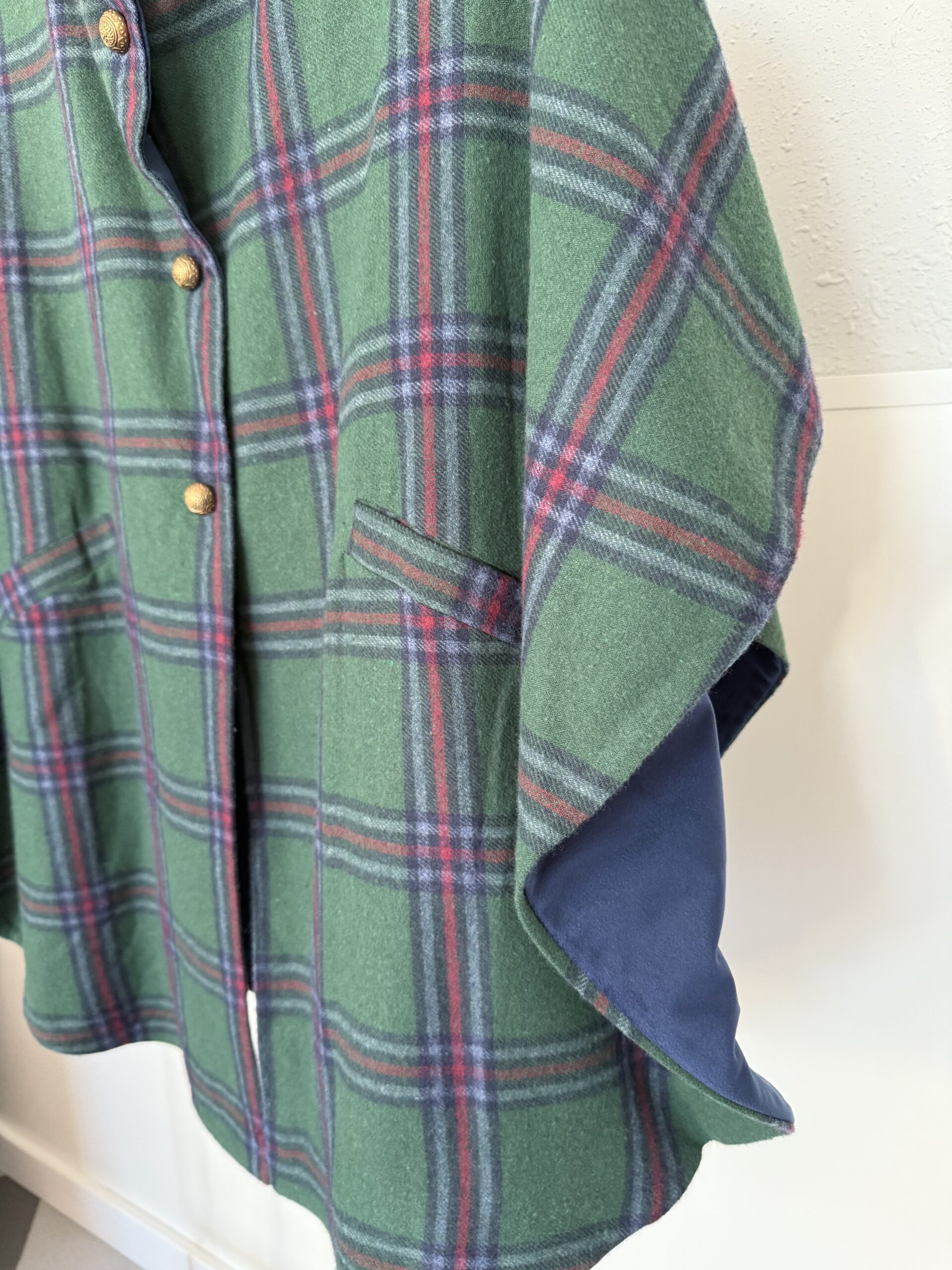 Capa en tejido de paño y el interior en terciopelo azul marino, ideal para los días fríos y combinarla con nuestra falda de cuadros en el mismo tono para crear un look elegante y original.