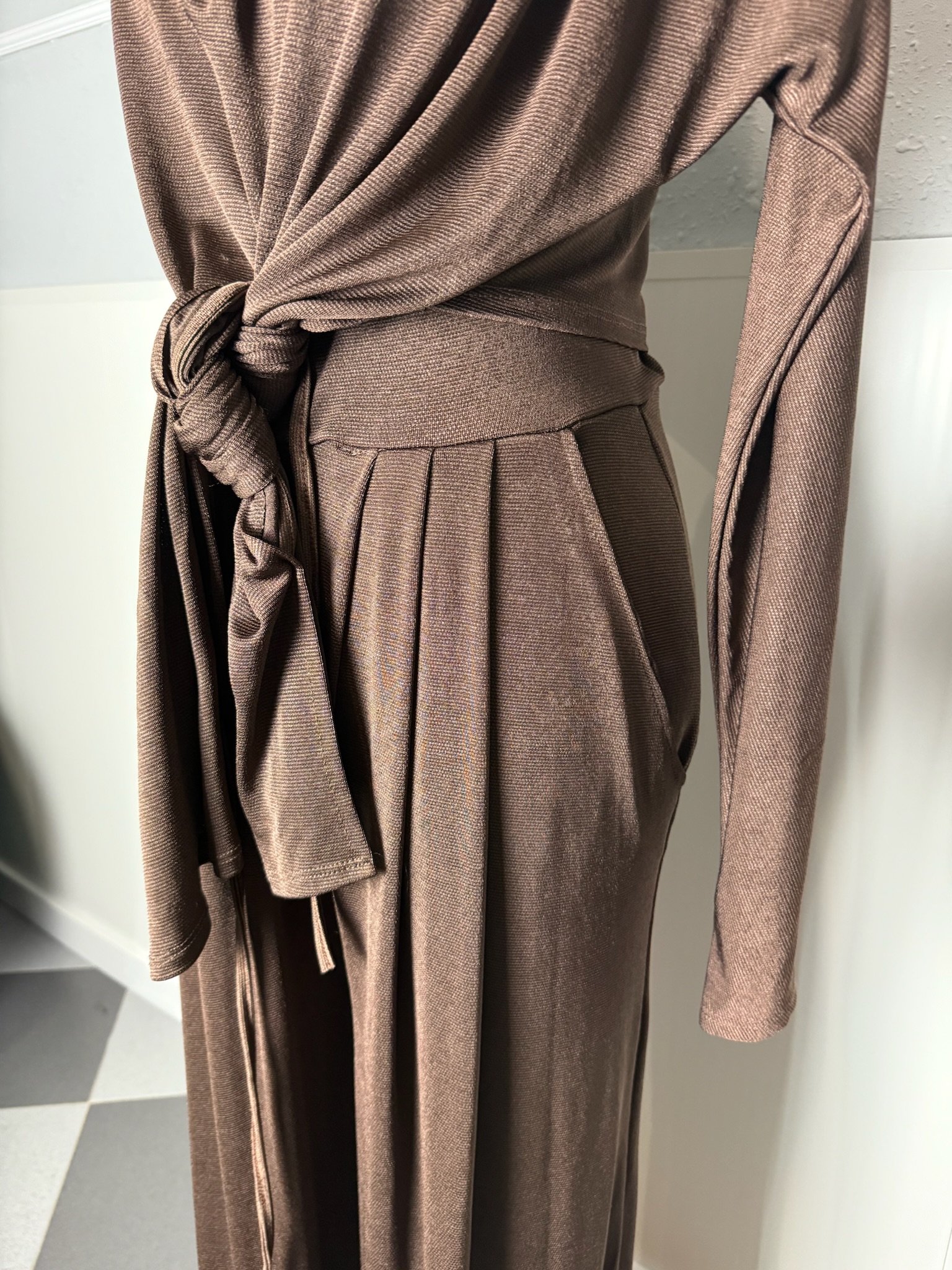 Conjunto en punto lúrex y super fluido. Talla única que se adapta genial gracias a su tela flojita y pantalones con goma en la cintura. Top multiposición para darle mucho más juego al traje. Escote de pico y detalle de hombreras.