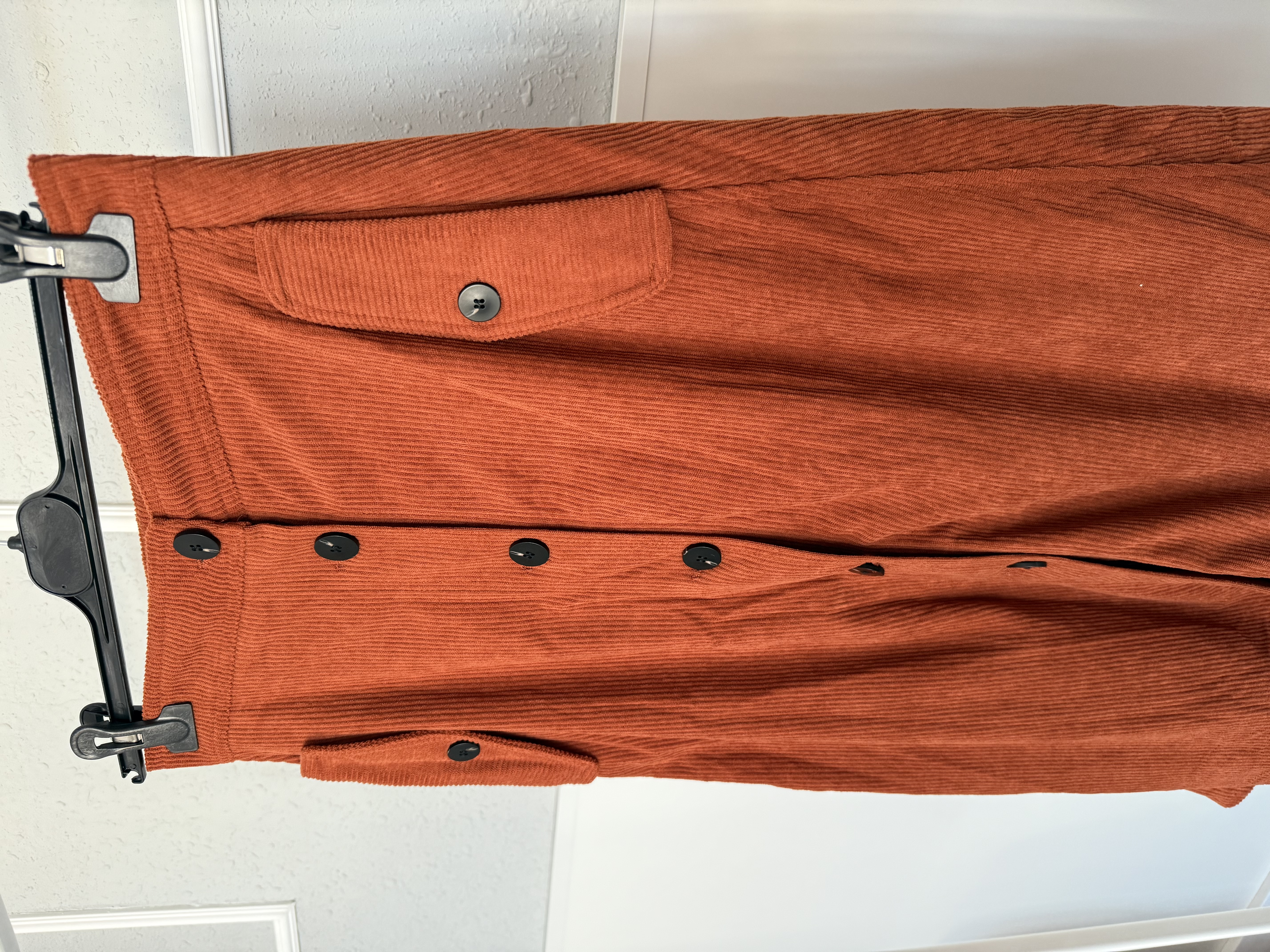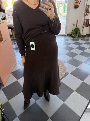 Con tejido de paño, bolsillos y largo midi. Cintura elástica, perfecta para ir calentita en invierno sin perder el estilo.
