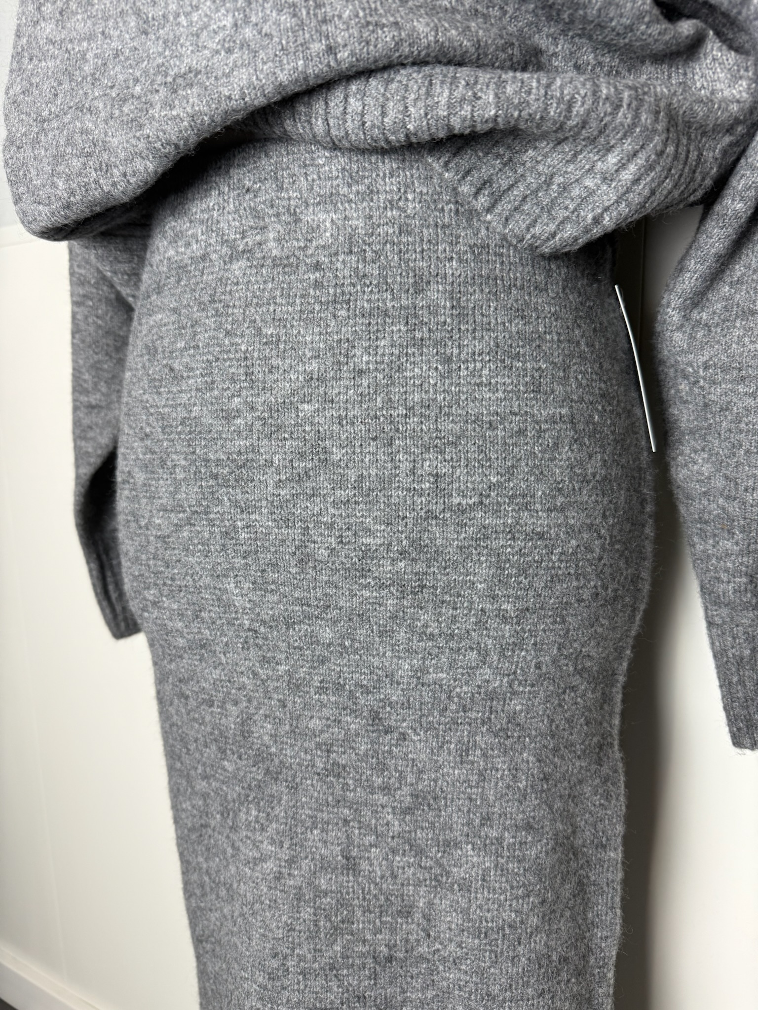 Falda de lana entubada, ceñida al cuerpo y gordita, abriga bastante y con botas altas combina genial. También podéis usarla con zapatillas para un look más cómodo.