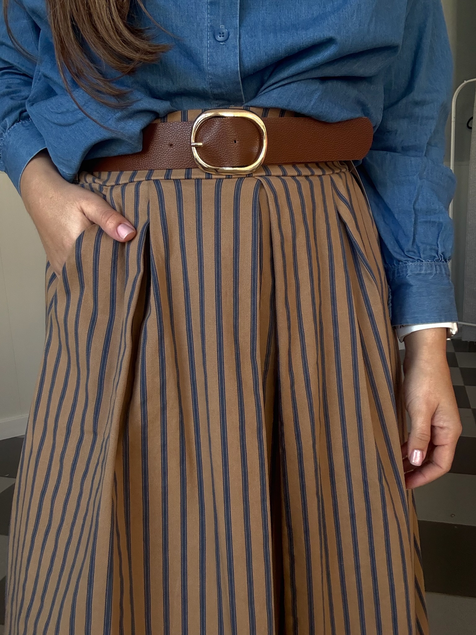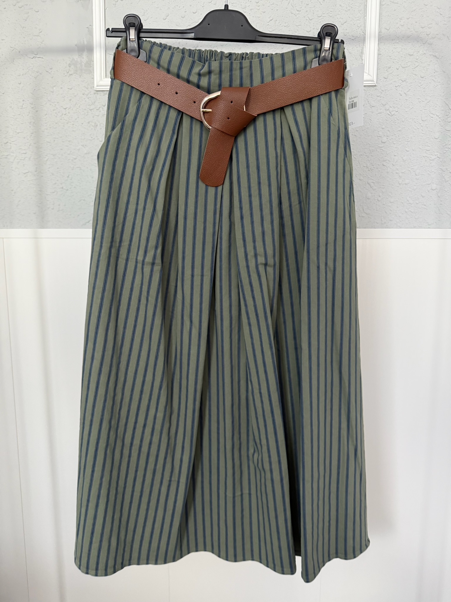 Falda de tablas de largo MIDI con cintura engomada. Talla única.