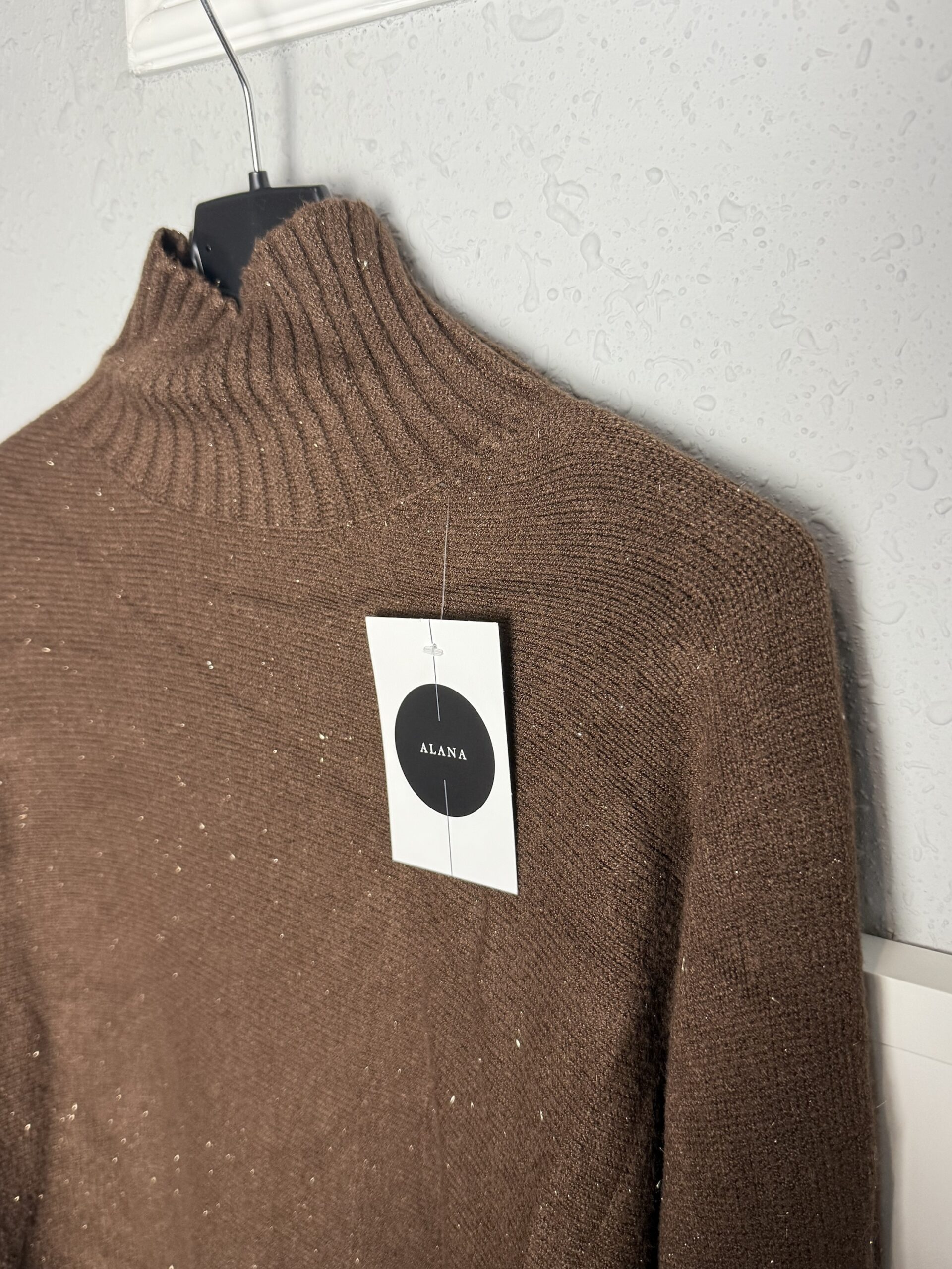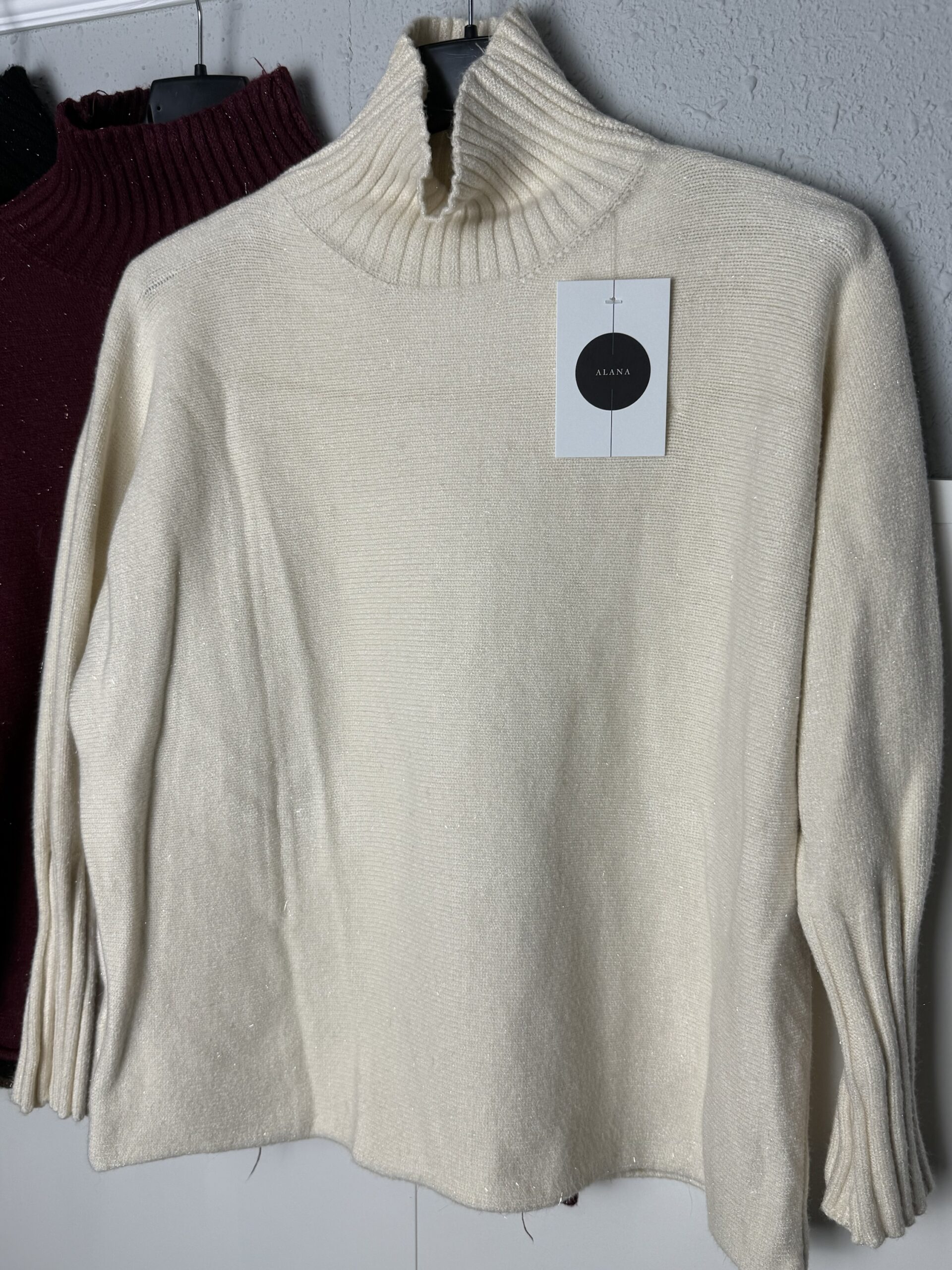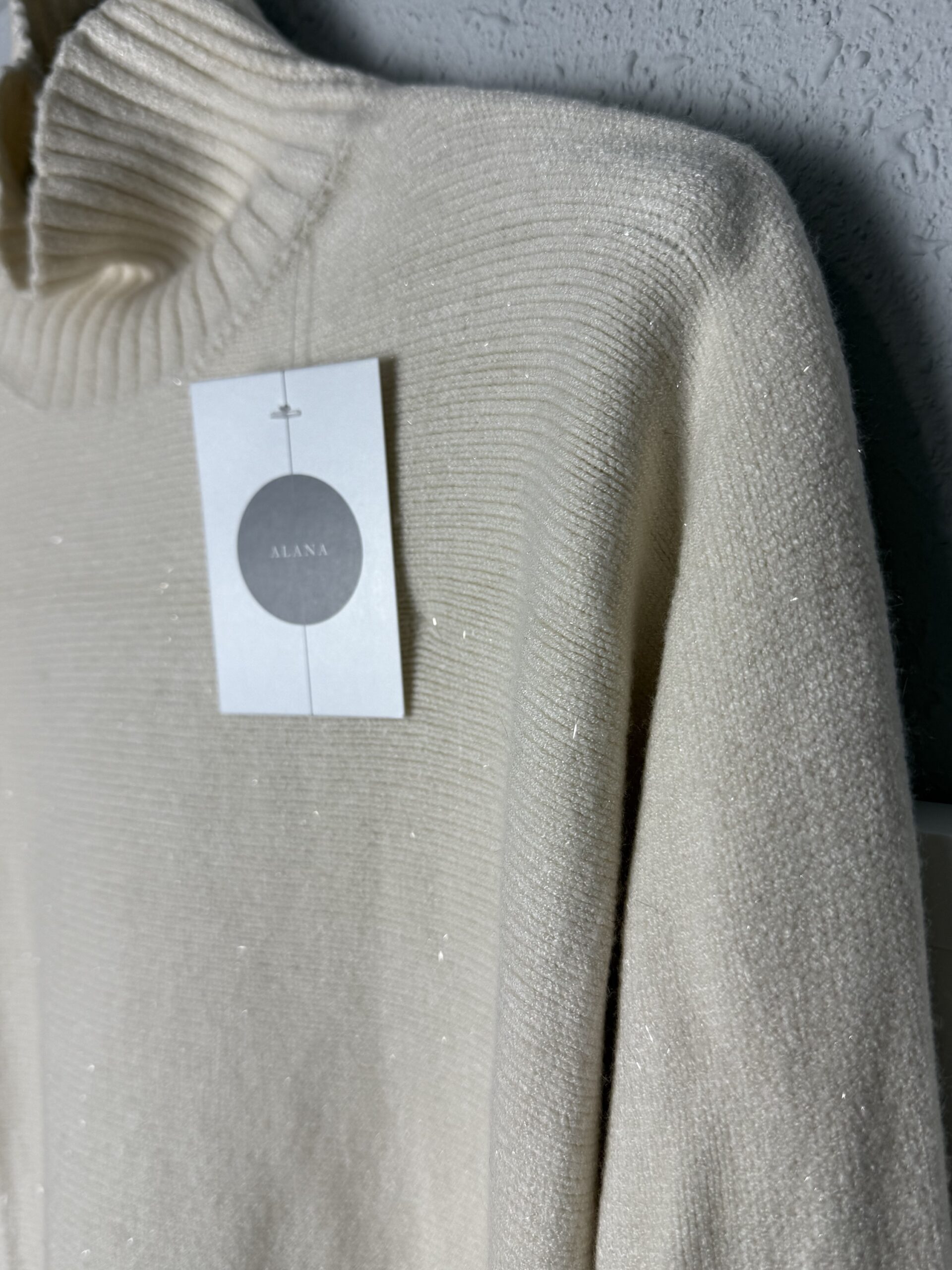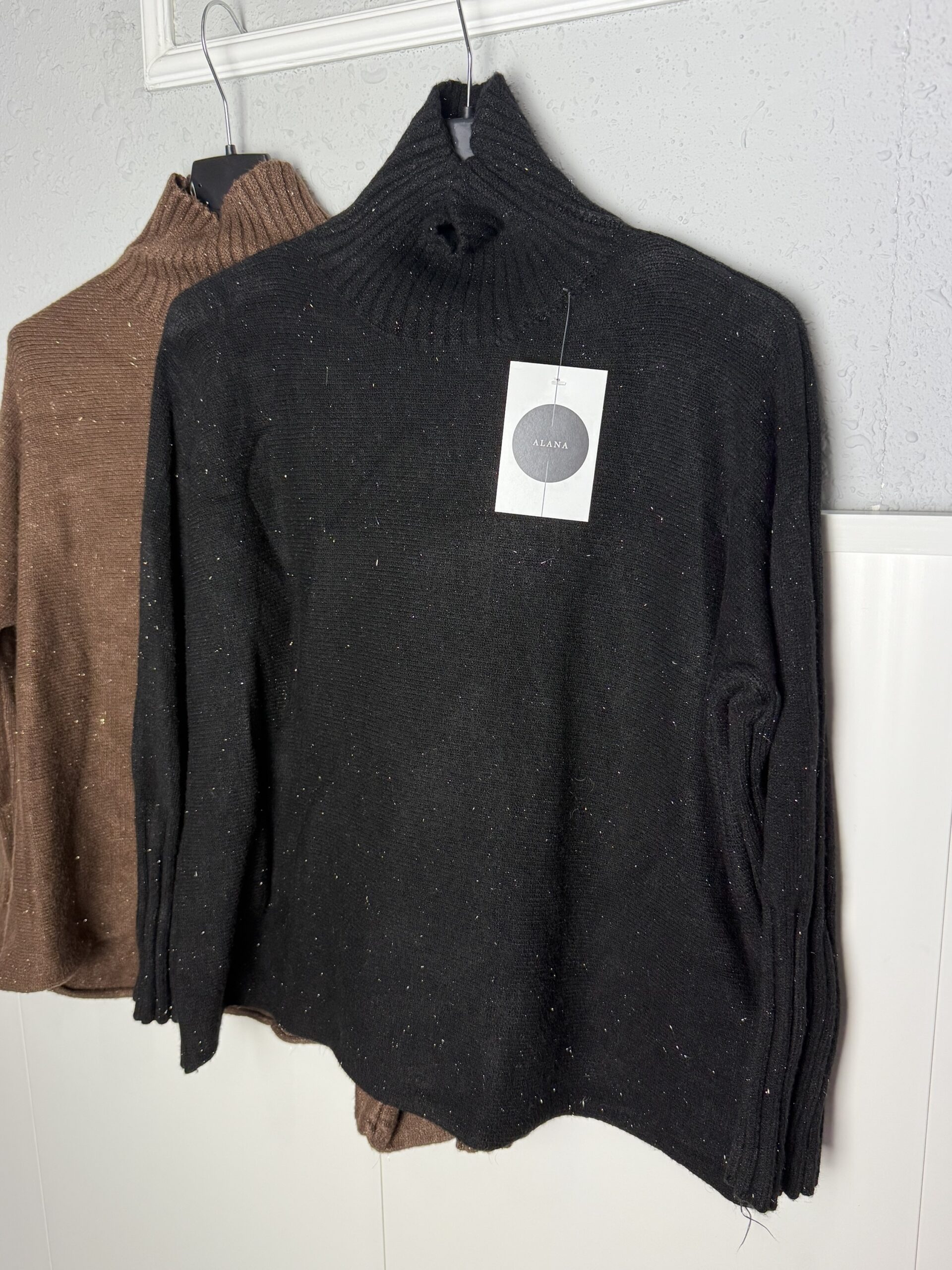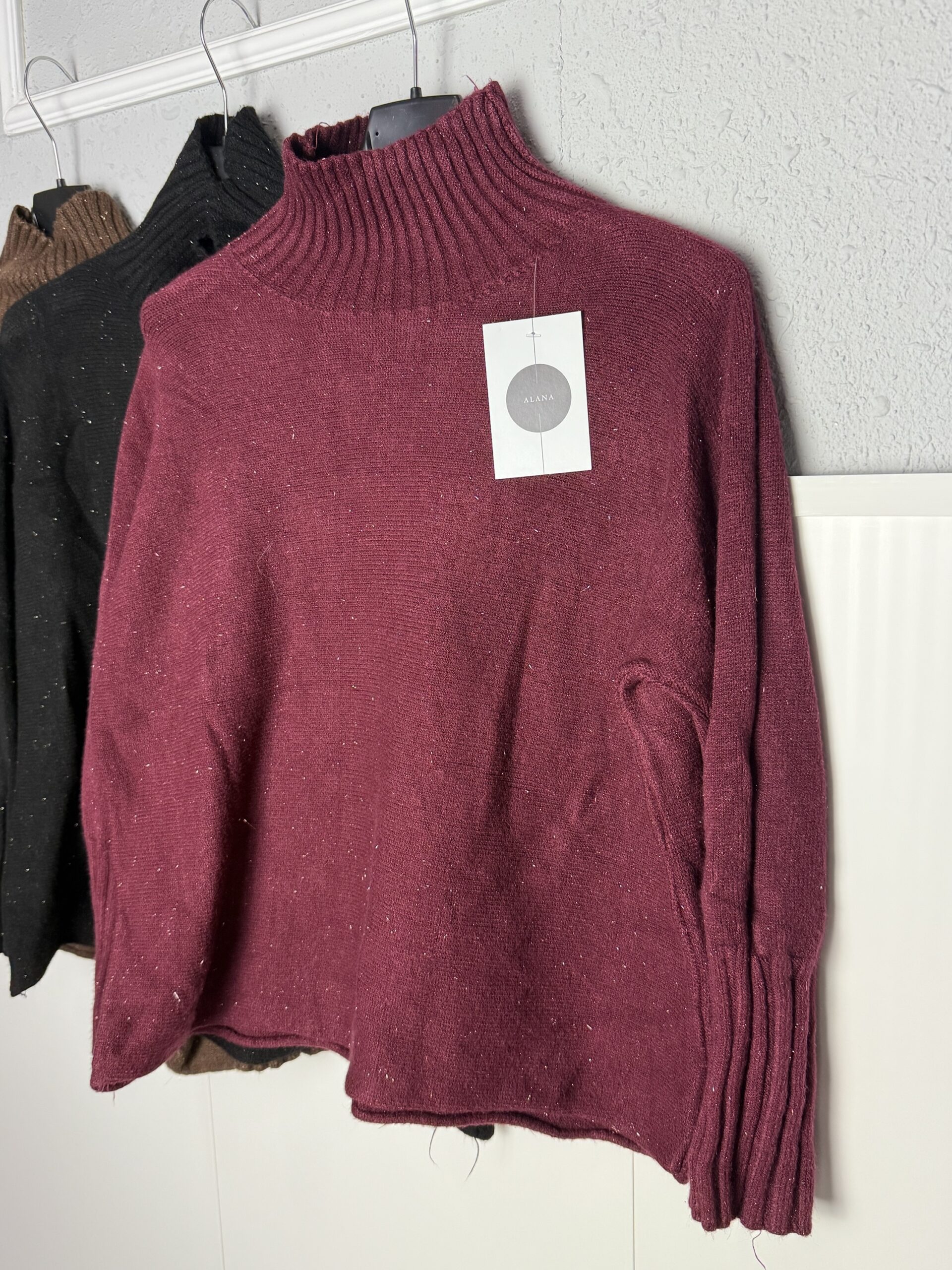 Jersey de media manga con cuello subido y un toque de brillo con hilos suaves en dorado.