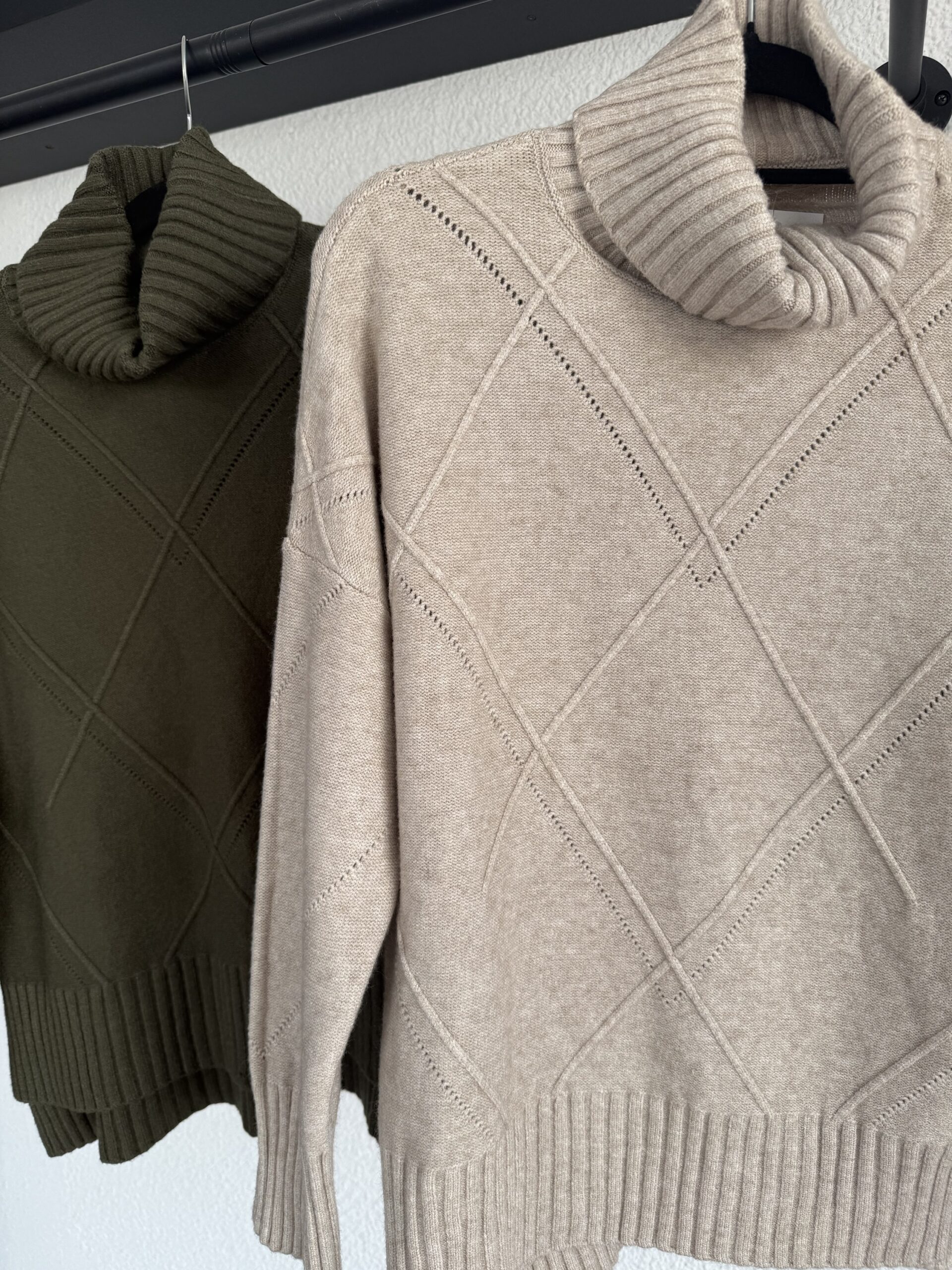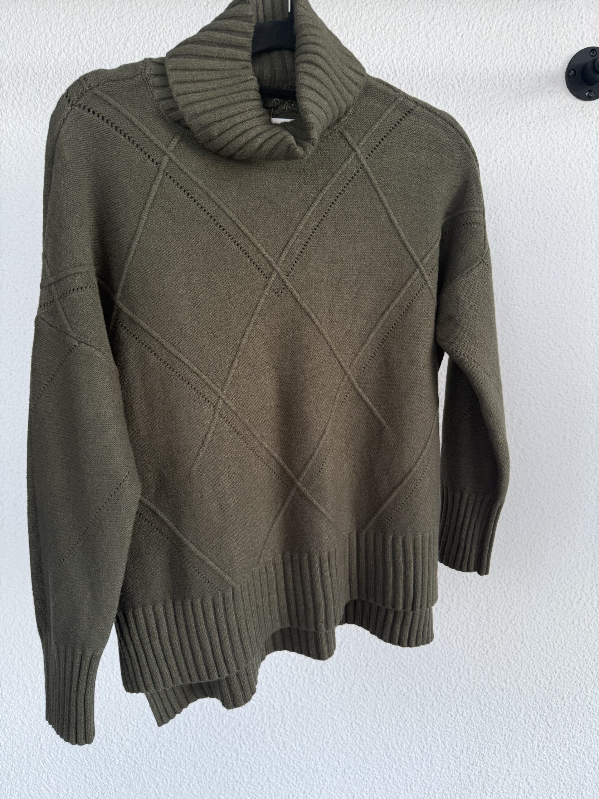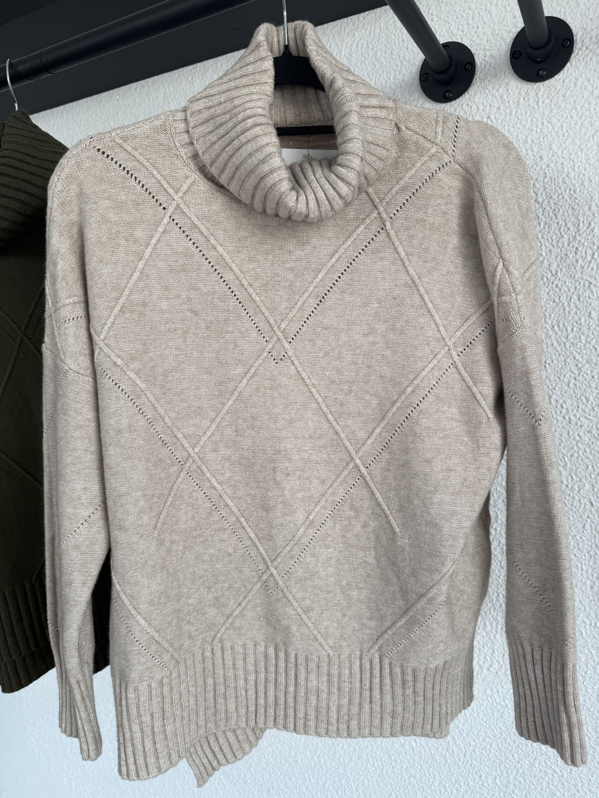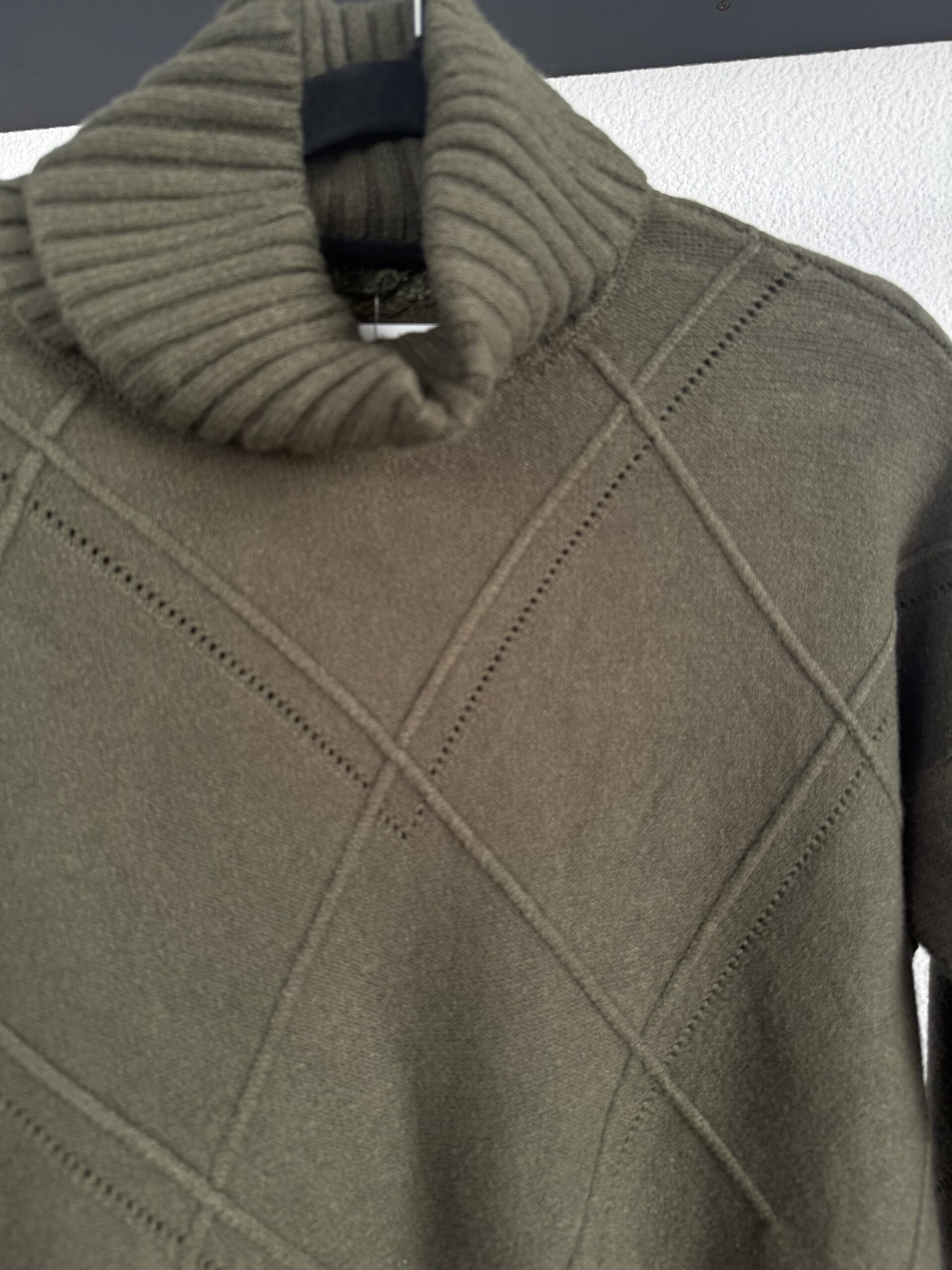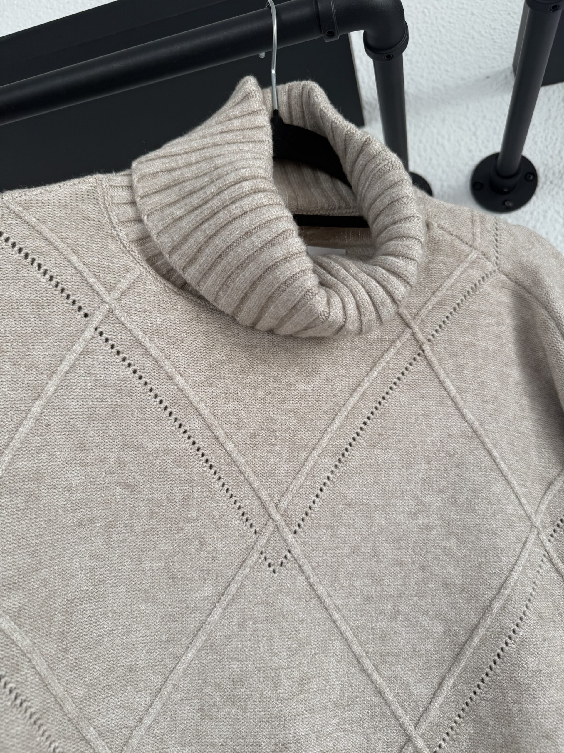 Jersey de lana con cuello alto y estampado en relieve de rombos. Talla única.