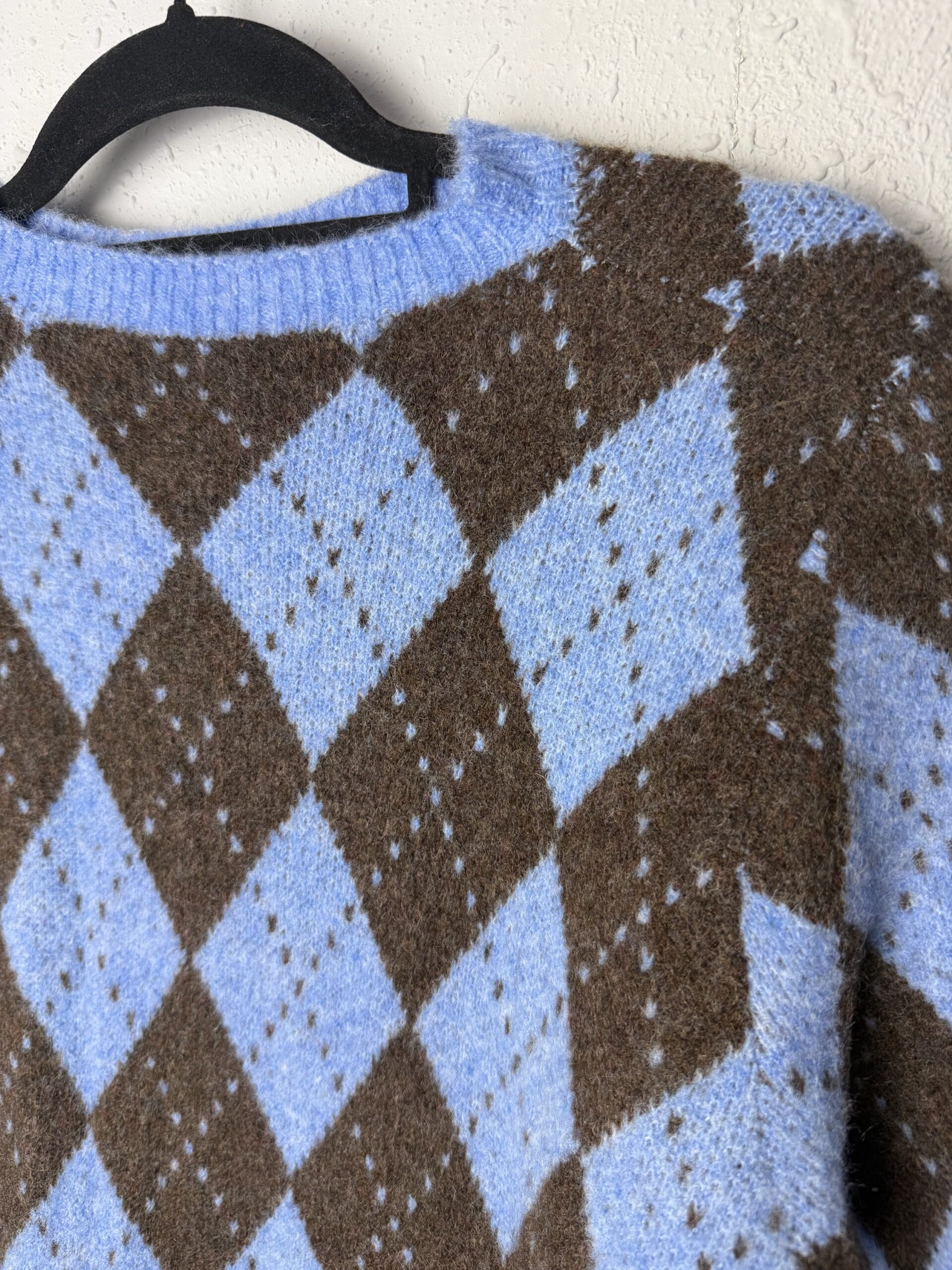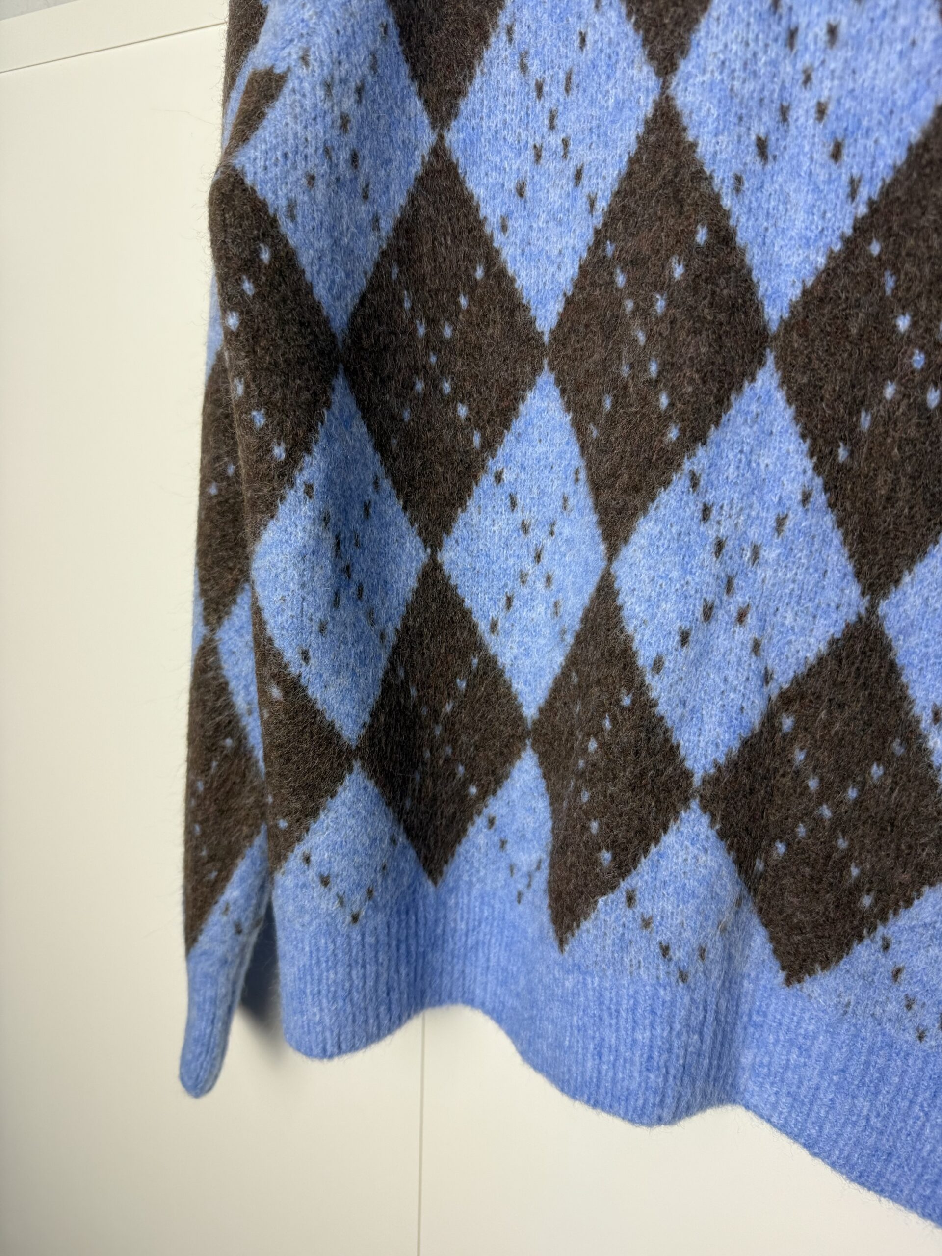 Jersey de lana con estampado súper tendencia en rombos, combinando estos tonos tan ideales.