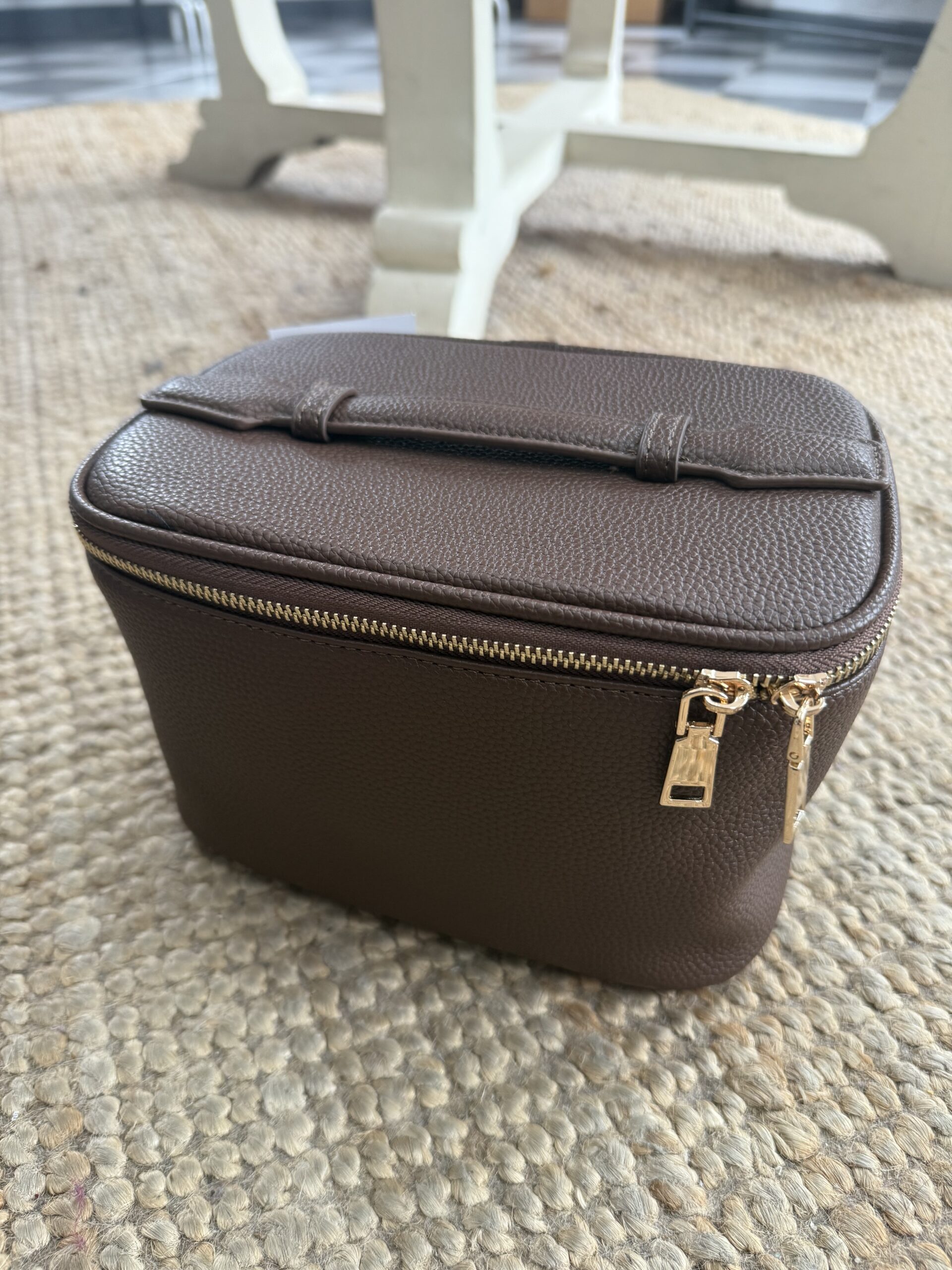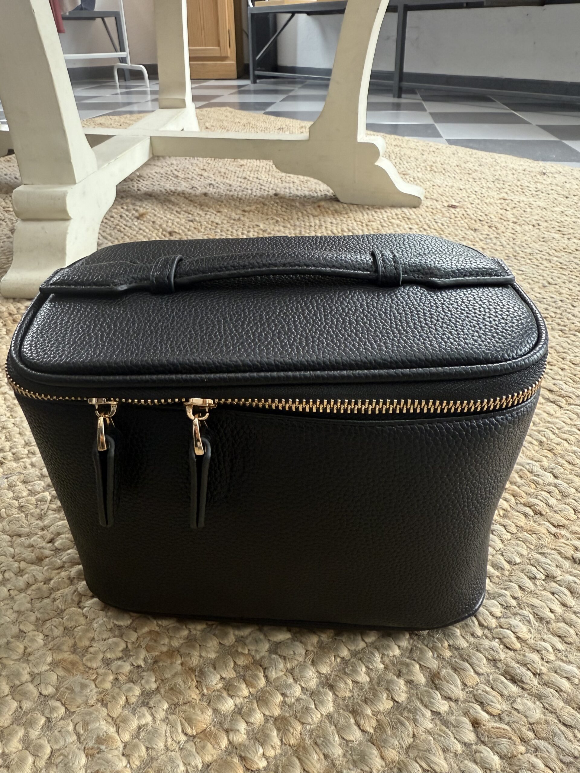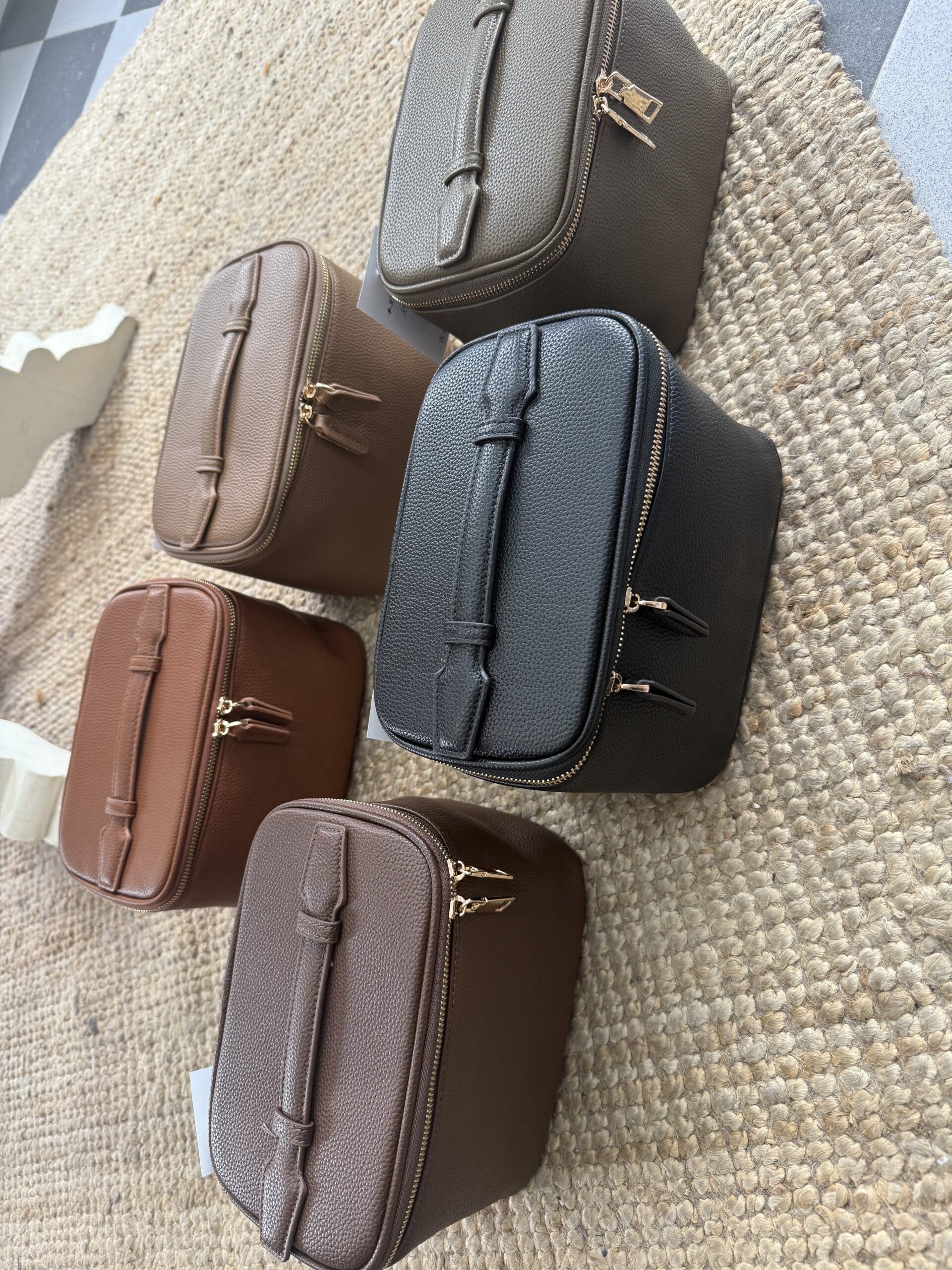 Precioso neceser con asa en poli piel, con compartimentos por dentro y forrado. Disponible en varios colores. Una idea genial como regalo o para guardar maquillaje.
