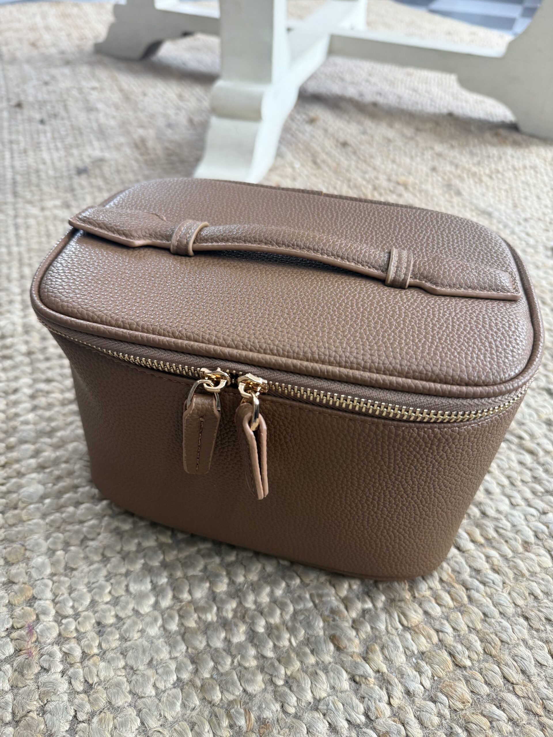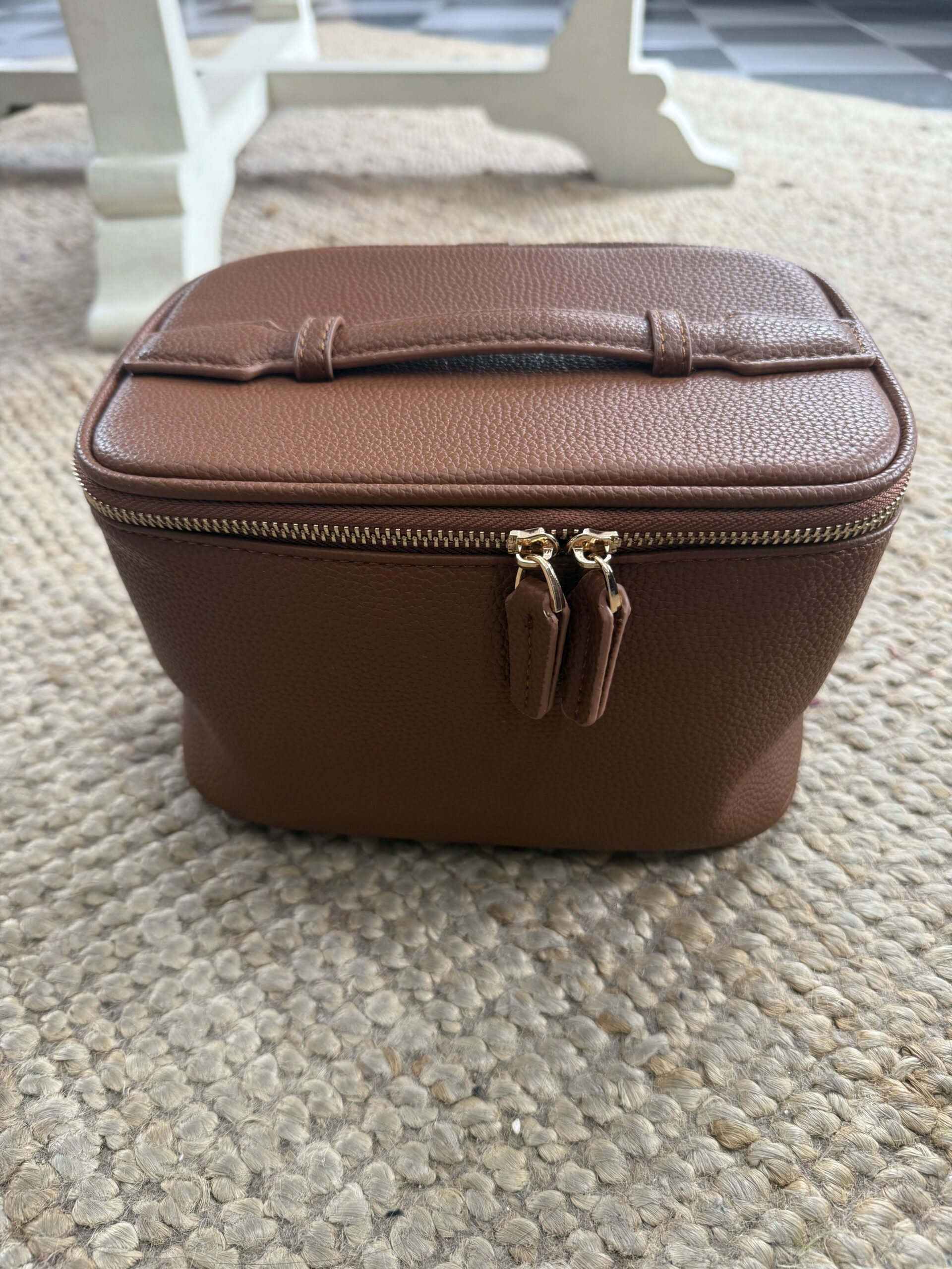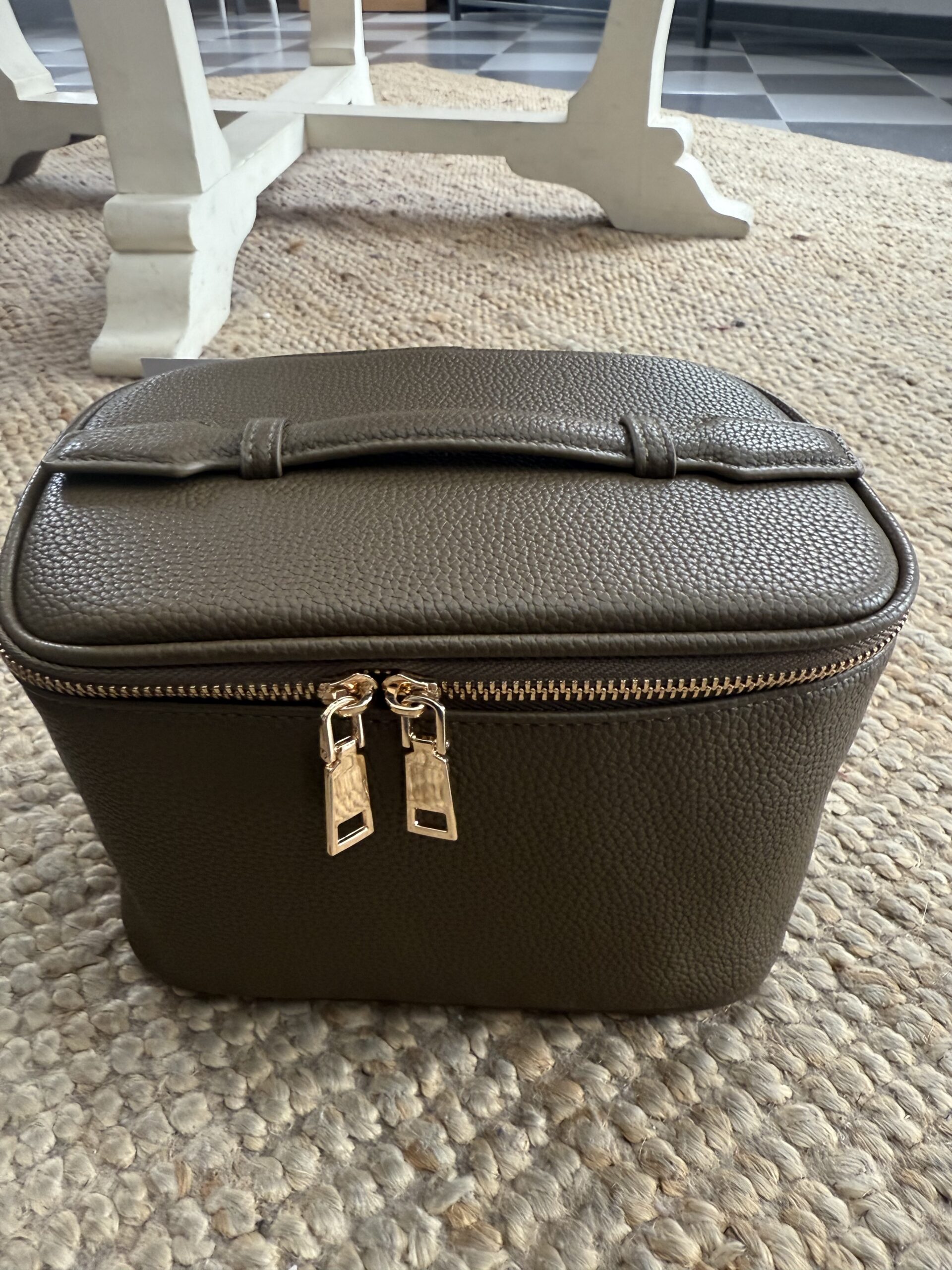Precioso neceser con asa en poli piel, con compartimentos por dentro y forrado. Disponible en varios colores. Una idea genial como regalo o para guardar maquillaje.
