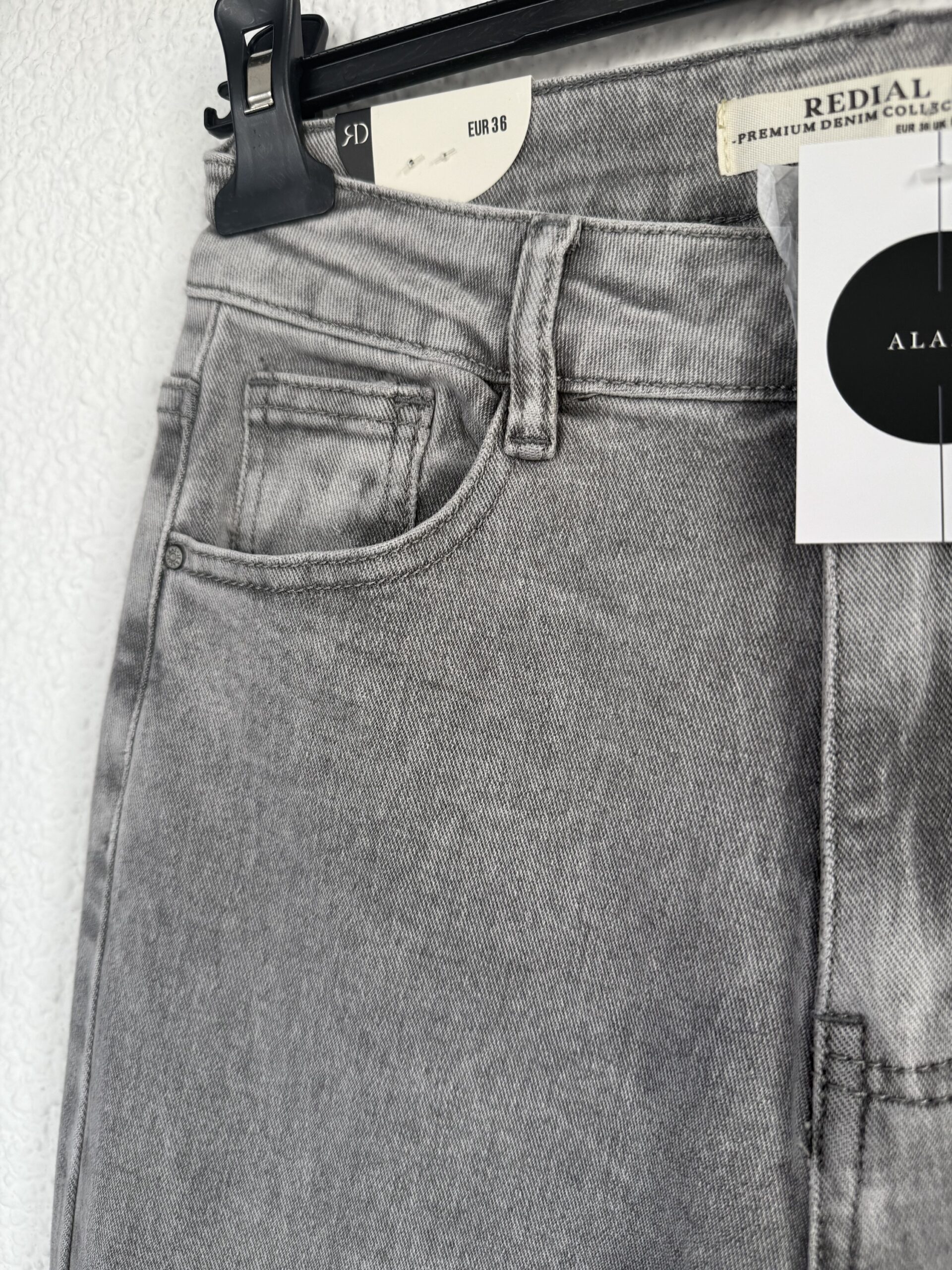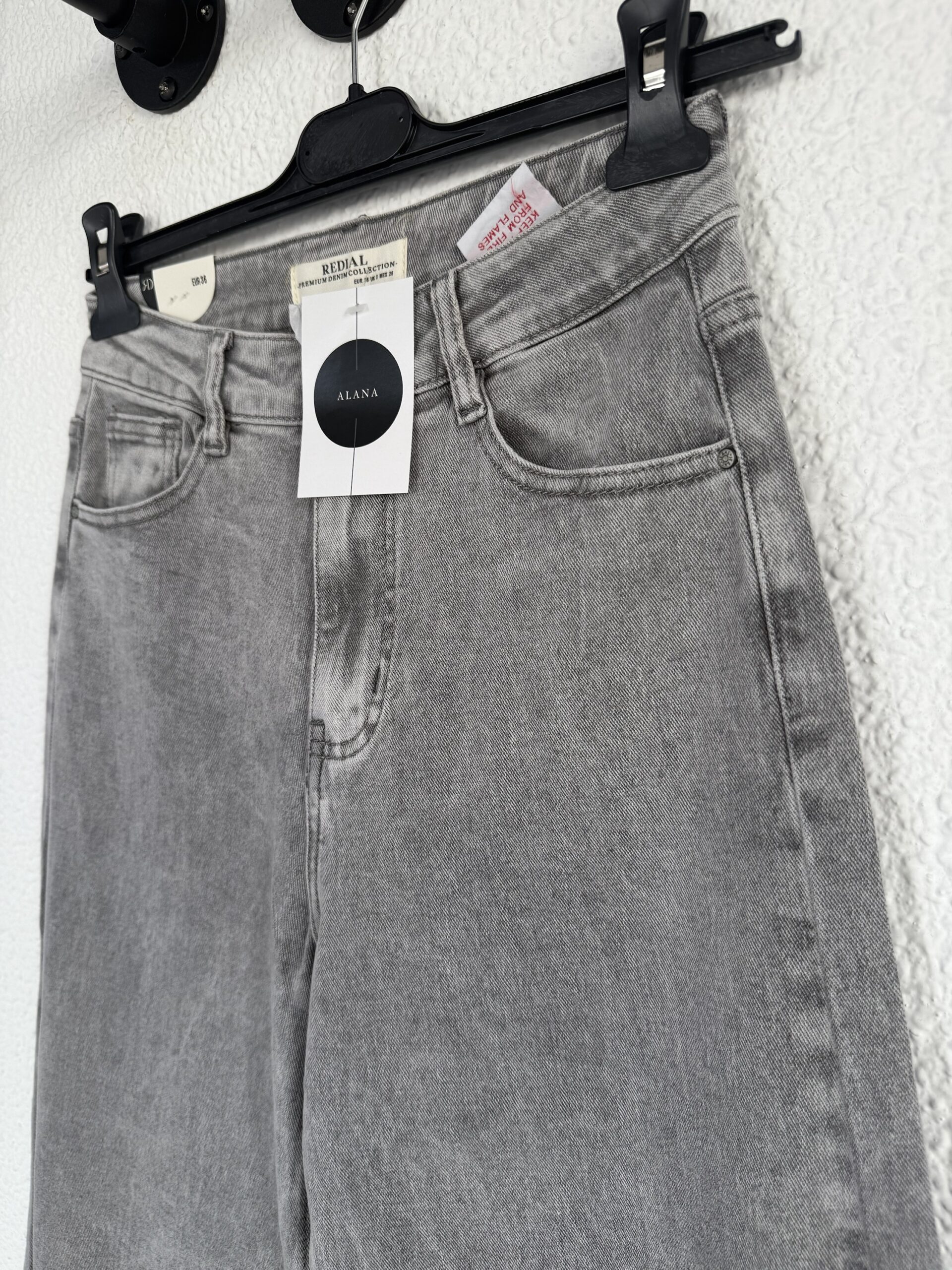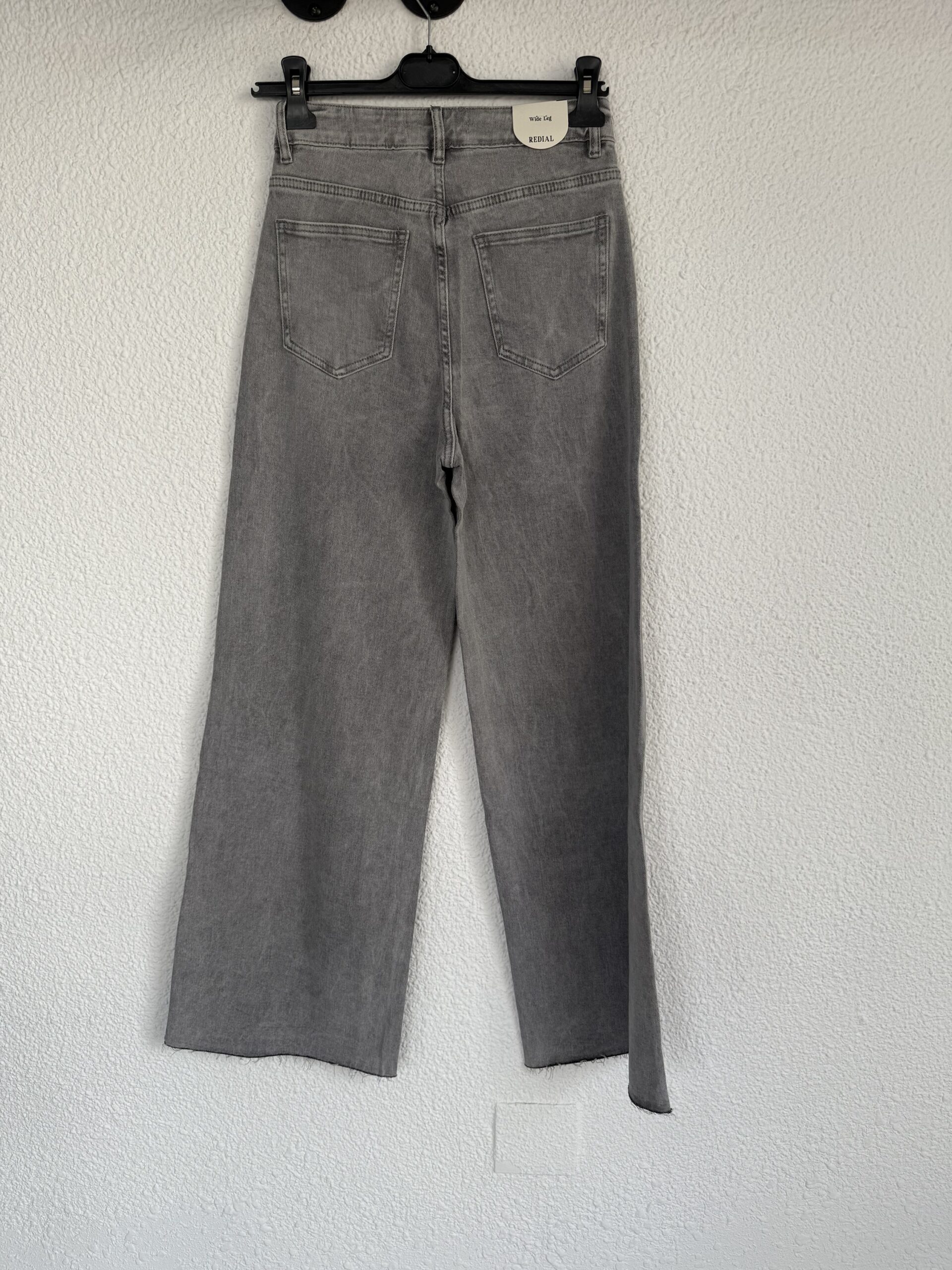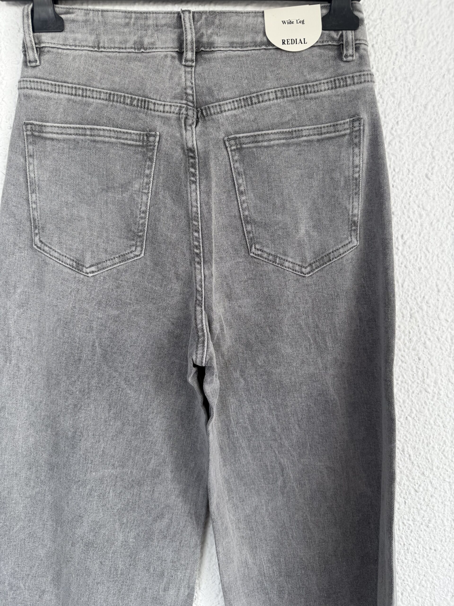 Vaquero en color gris con corte wide leg. De tiro alto con cintura ajustada y pierna ancha. Push up.