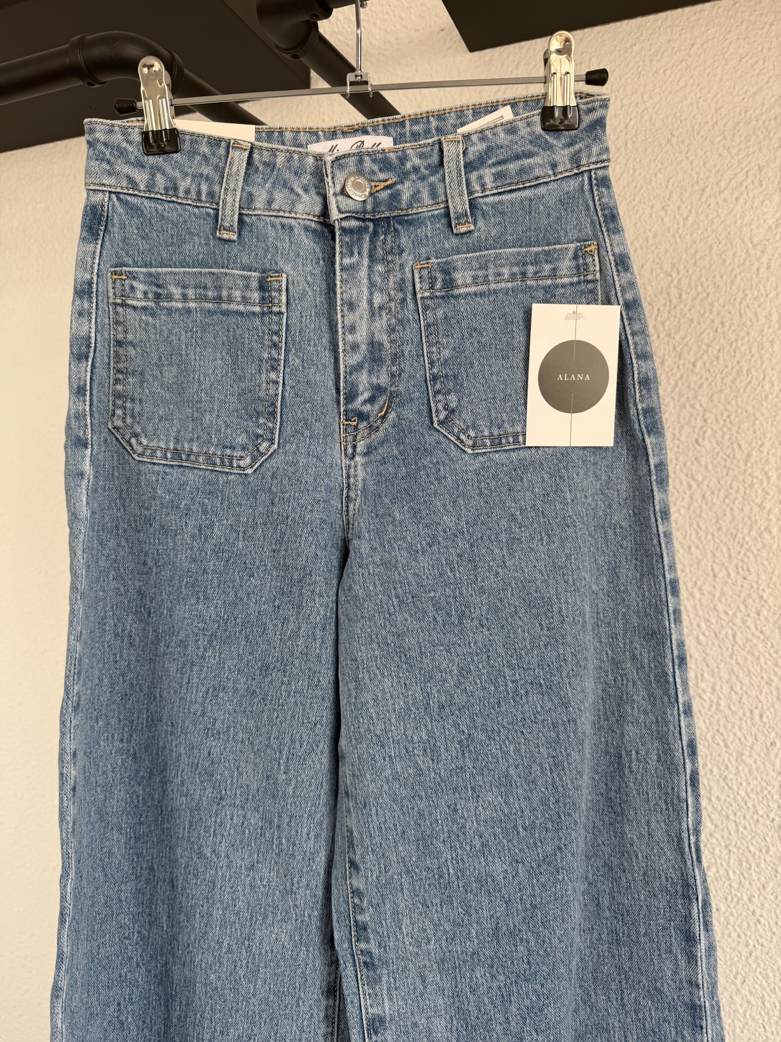 Vaquero en tono medio, de tiro alto y pierna ancha.