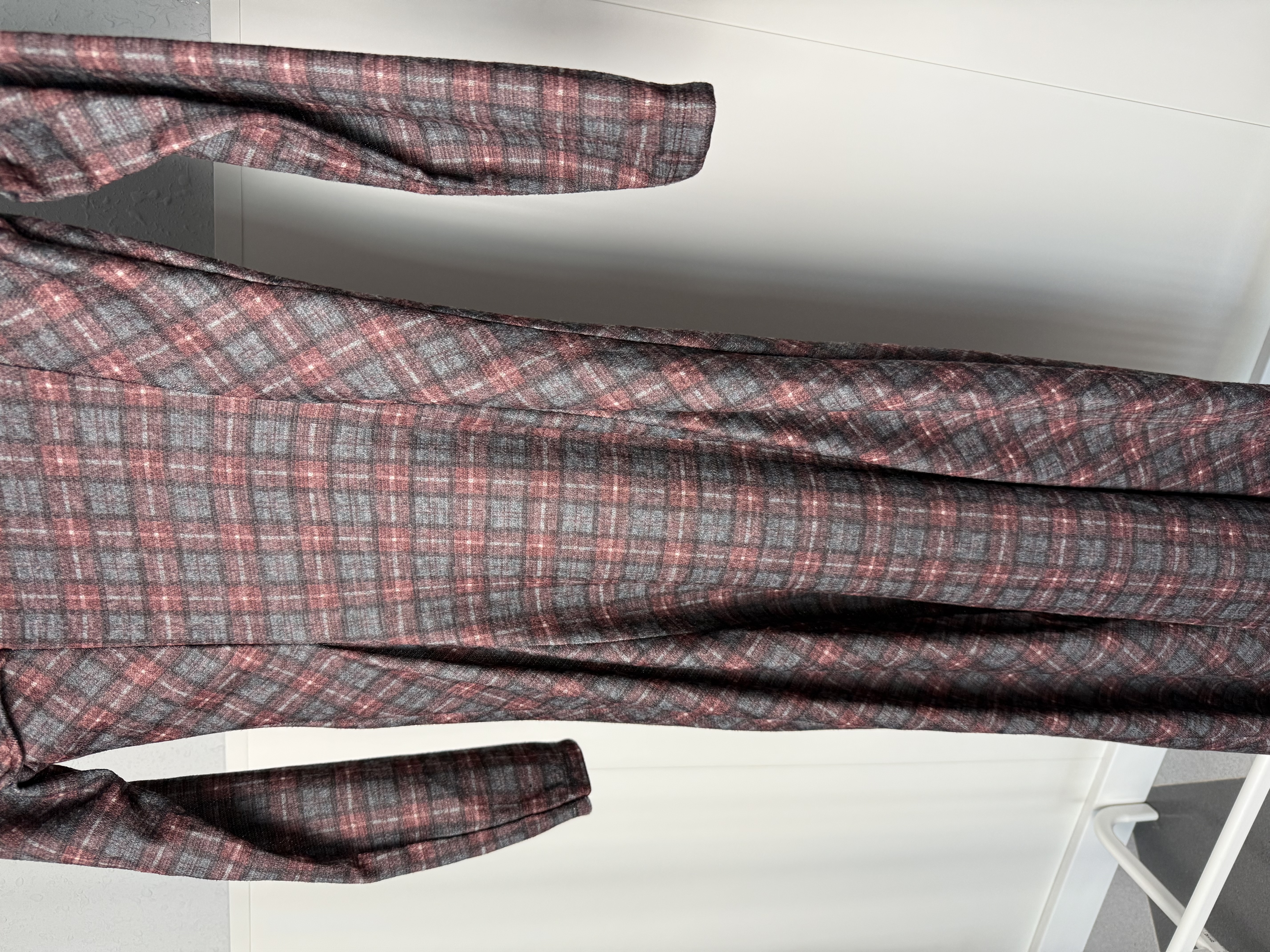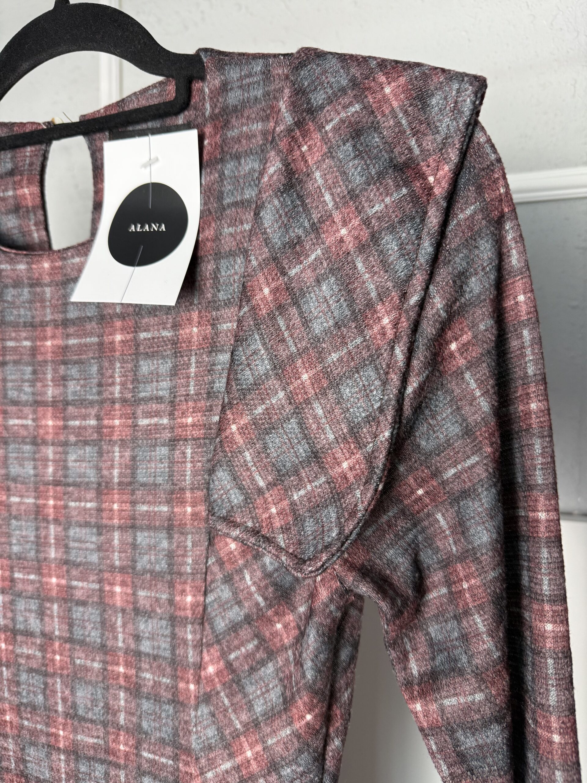 Vestido en tejido paño ceñido a la cintura y con falda de vuelo en línea A. Detalle de hombreras